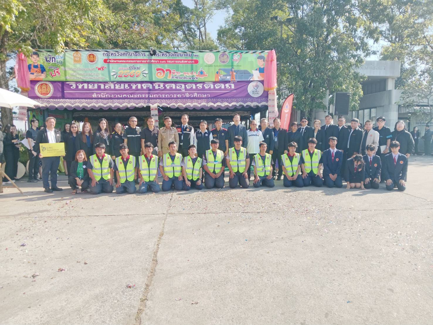 โดยมี นายปรีชา ผอ.วิทยาลัยเทคนิคอุตรดิตถ์ นางพนิดา ภิมาลย์ หัวหน้ากลุ่มวิชาการขนส่ง สำนักงานขนส่งจังหวัด จ.อุตรดิตถ์ นายสมเกียรติ มั่นดี รองผู้อำนวยการวิทยาลัยอาชีวศึกษาอุตรดิตถ์ นายสมชาย ไชยพันธ์ รองนายก อบจ.อุตรดิตถ์ ผู้แทนจาก สนง.สาธารณสุข จ.อุตรดิตถ์ ผู้แทนจาก สนง.คปภ. น.ส.นารีรัตน์ สุขเอม ผจก.บริษัทกลางคุ้มครองผู้ประสบภัยจากรถ สาขาอุตรดิตถ์ ตลอดจนคณะผู้บริหาร ครูอาจารย์และนักศึกษาคอยให้การต้อนรับการจัดกิจกรรมในวันนี้ โครงการบูรณาการตั้งจุดบริการอำนวยความสะดวกเพื่อความปลอดภัยในการเดินทางช่วงเทศกาลส่งท้ายปีเก่าต้อนรับปีใหม่ ทางสำนักงานคณะกรรมการการอาชีวศึกษา ร่วมกับกรมการขนส่งทางบก ได้มอบหมายให้สถานศึกษาที่จัดการเรียนการสอนด้านช่างยนต์ จังหวัดอุตรดิตถ์ได้จัดกิจกรรมดังกล่าวขึ้นเพื่ออำนวยความสะดวกเพื่อความปลอดภัยในการเดินทางให้บริการตรวจสภาพรถ ของประชาชน 20 รายการ ฟรี ระหว่างการเดินทางช่วงเทศกาลปีใหม่รวมถึง สิ่งอำนวยความสะดวกสำหรับ การพักคน พักรถบนถนนสายหลัก และถนนสายรองทั่วประเทศ ระหว่างวันที่ 29 ธันวาคม 2568 ถึง 5 มกราคม 2569 ตั้งแต่เวลา 06.00-18.00 น.วิทยาลัยเทคนิคอุตรดิตถ์ ได้รับมอบหมายให้ดำเนินการโครงการบูรณาการตั้งจุดบริการอำนวยความสะดวกเพื่อความปลอดภัยในช่วงเทศกาลปีใหม่ พ.ศ. 2569 ซึ่งมีผู้ดำเนินการประกอบด้วย คณะผู้บริหาร ครู เจ้าหน้าที่ และนักเรียน นักศึกษา ทำหน้าที่สับเปลี่ยนหมุนเวียนกันคอยให้บริการช่วยเหลือประชาชนที่เดือดร้อนในเบื้องต้น