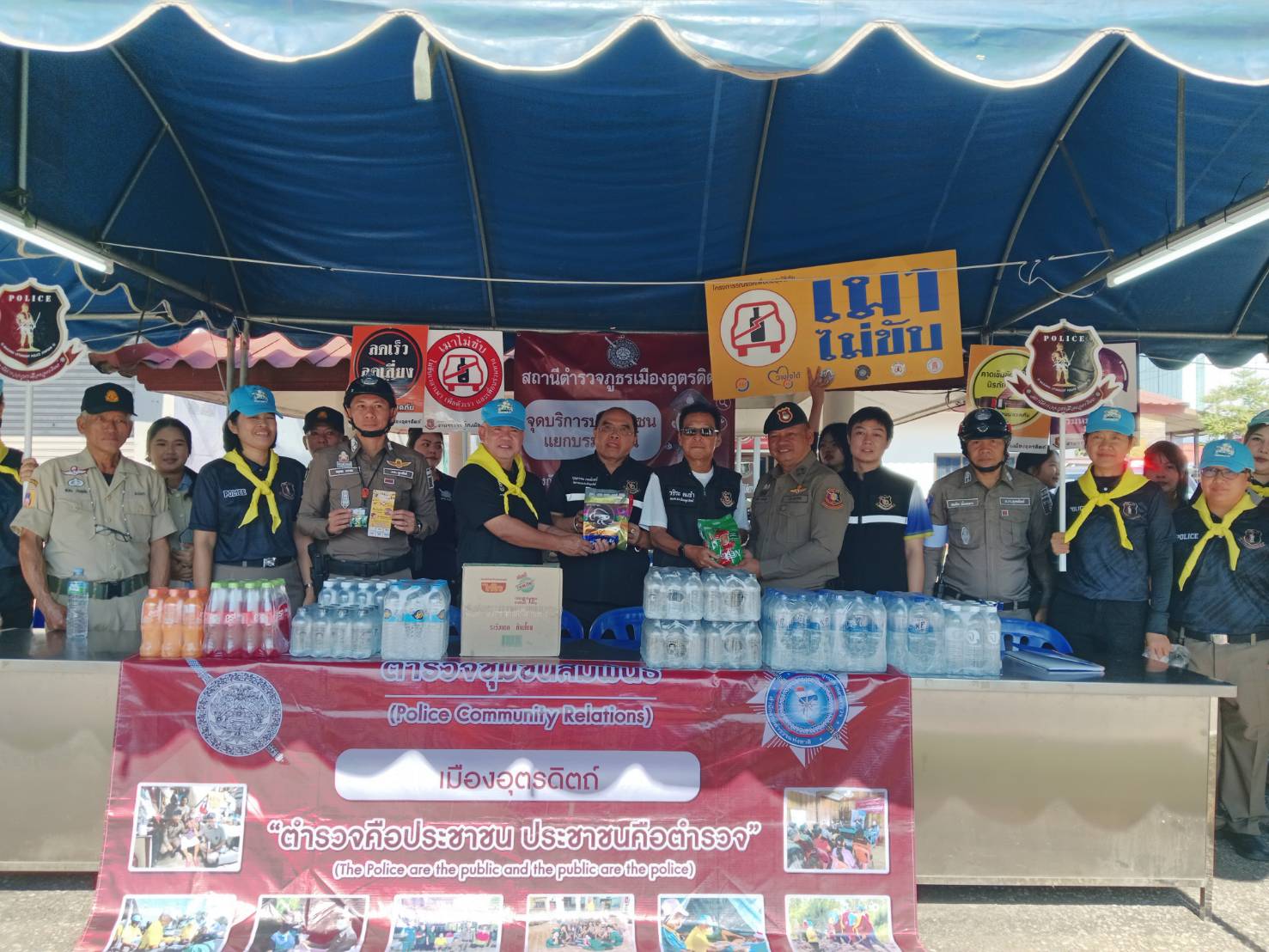 ส่วนเวลา 10.00 น.ที่บริเวณสี่แยกช้าง-ม้า-วัว-ควายตรงข้ามโรงพยาบาลพิษณุเวชอุตรดิตถ์ ต.ป่าเซ่า อ.เมือง จ.อุตรดิตถ์ จากการนำของพ.ต.อ.ไกรสิทธิ์ พรหมปฏิมา ผกก.สภ.เมืองอุตรดิตถ์ พ.ต.ท.นฤพล คนชม รอง ผกกจน. พ.ต.ท.สมคิด มั่นเหมาะ สารวัตรจราจร นายบุญธรรม กอนโภชน์ กต.ตร.สภ.เมืองอุตรดิตถ์ หจก.บุญธรรมออโตเซอร์วิส นายวชิรระ คมขำ กต.ตร.สภ.เมืองอุตรดิตถ์ได้นำสิ่งของมามอบให้กับเจ้าหน้าที่ตำรวจจราจรตลอดจน อสม.อพปร.ที่มาปฎิบัติหน้าที่ในช่วงเทศกาลปีใหม่ที่บริเวณสี่แยกศูนย์จราจร สามแยกบ้านม่อนดินแดง หน่วยบริการประชาชนเขาแก้วและหน่วยบริการประชาชนคุ้งตะเภา