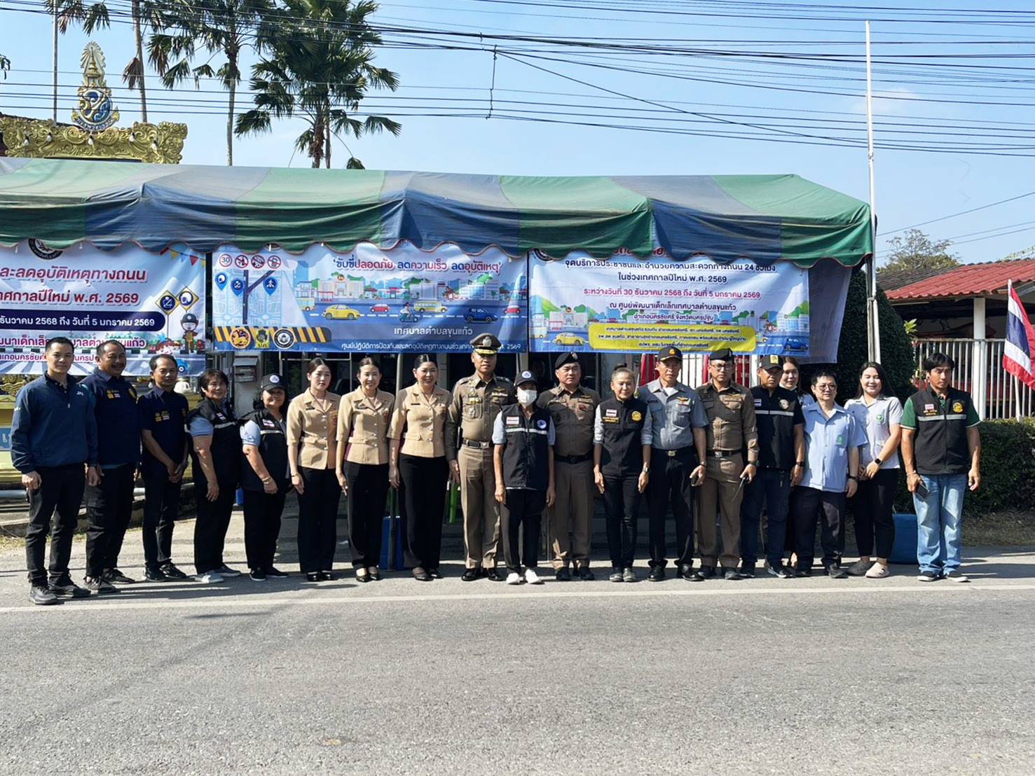 โดยมี พ.ต.อ.เลอศักดิ์ ตุมรสุนทร ผกก.สภ.นครชัยศรี พ.ต.ท.อิสรภาพ แก้วชอบคราม รอง ผกก.ป.สภ.นครชัยศรี พ.ต.ท.อัครภณ ลี้เกษร สวป.สภ.นครชัยศรี คุณสุธาสินี ตุมรสุนทร คุณปนัดดา ไข่แก้ว สมาชิกแม่บ้านตำรวจภูธรจังหวัดนครปฐม คณะ กต.ตร.สภ.นครชัยศรี และข้าราชการตำรวจในสังกัดตำรวจภูธรจังหวัดนครปฐม นายสมศักดิ์ เอี่ยมพินพันธุ์ นายกเทศมนตรี ตำบลขุนแก้ว ดร.ชนาภัทท์ ชมภูนิชชภัทต์ กำนันตำบลขุนแก้ว นายรัฐไกร จันทร์ชัยชนะกุล ผอ.รพ.สต.ขุนแก้ว และเจ้าหน้าที่ตำรวจ เจ้าหน้าที่ตำรวจตรวจคนเข้าเมือง เจ้าหน้าที่สาธารณสุข (อสม.) จิตอาสา กำนัน ผู้ใหญ่บ้าน อปพร.อาสาสมัร ตำรวจอาสา ร่วมบูรณาการกำลังปฏิบัติหน้าที่ ณ .บริเวณจุดบริการประชาชน เพื่ออำนวยความสะดวกและดูแลประชาชนตลอดช่วงเทศกาลปีใหม่