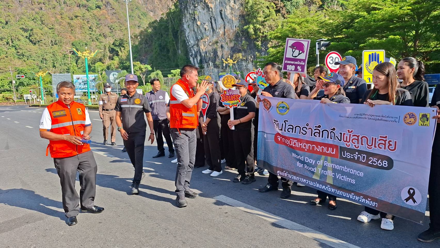 ผู้สื่อข่าวรายงานนายไพรัตน์ เพชรยวน ผู้ว่าราชการจังหวัดพังงา รณรงค์การป้องกันและลดอุบัติเหตุทางถนนและทางน้ำช่วงเทศกาลปีใหม่ พ.ศ. 2569 จังหวัดพังงา ภายใต้คำขวัญ “ขับขี่ปลอดภัย ลดความเร็ว ลดอุบัติเหตุ” ณ บริเวณสามแยกวังหม้อแกง อำเภอเมืองพังงา จังหวัดพังงา พร้อมอ่านสารนายกรัฐมนตรี เนื่องใน “วันโลกรำลึกถึงผู้สูญเสียจากอุบัติเหตุทางถนน ประจำปี 2568 และกล่าวให้โอวาท และรับมอบเครื่องดื่มและสิ่งของบริจาคจากหน่วยงานต่าง ๆ เพื่อสนับสนุนการปฏิบัติงานของเจ้าหน้าที่ โดยมีนายบัญชา ธนูอินทร์ รองผู้ว่าราชการจังหวัดพังงา หัวหน้าส่วนราชการ ฝ่ายปกครอง ตำรวจ ทหาร แพทย์ พยาบาล องค์กรมูลนิธิ กู้ชีพ กู้ภัย เข้าร่วมกิจกรรม
