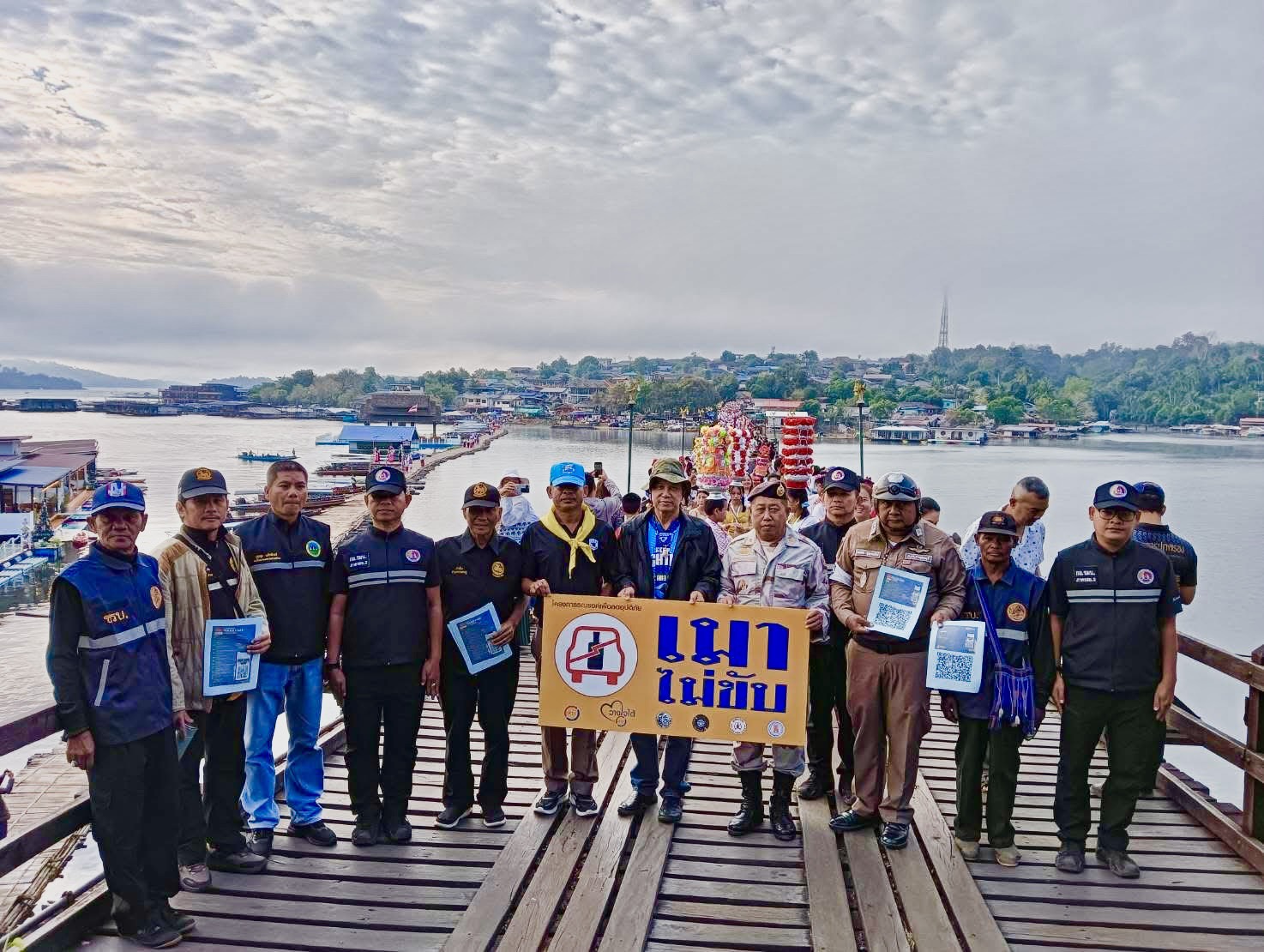 ด้านสภ.สังขละบุรี พันตำรวจเอกสันติ พิทักษ์สกุล ผกก.สภ.สังขละบุรี พันตำรวจโทมนัส พร้อมศักดิ์โสภณ รอง ผกก.ปป.สภ.สังขละบุรี พันตำรวจโท ประดิษฐ์ แร่เพชร สวป.สภ.สังขละบุรี พร้อมกำลังเจ้าหน้าที่ตำรวจ สภ.สังขละบุรี นายถนอม แก้วจันทร์ กำนันตำบลหนองลู นายปวรุฒ์ วนาพิทักษ์กุล สารวัตรกำนันตำบลหนองลู ทหารหน่วยเฉพาะกิจลาดหญ้า ร้อย ตชด.ที่ 134 อส. ปกครองสังขละบุรี ได้ร่วมกันบูรณาการ บริการนักท่องเที่ยว แจกเอกสารแผ่นพับคิวบาร์โค้ด กรณีเกิดเหตุจะแจ้งได้ทันอย่างท่วงที และยังร่วมเดินรณรงค์โครงการเมาไม่ขับ ขับขี่ปลอดภัย
