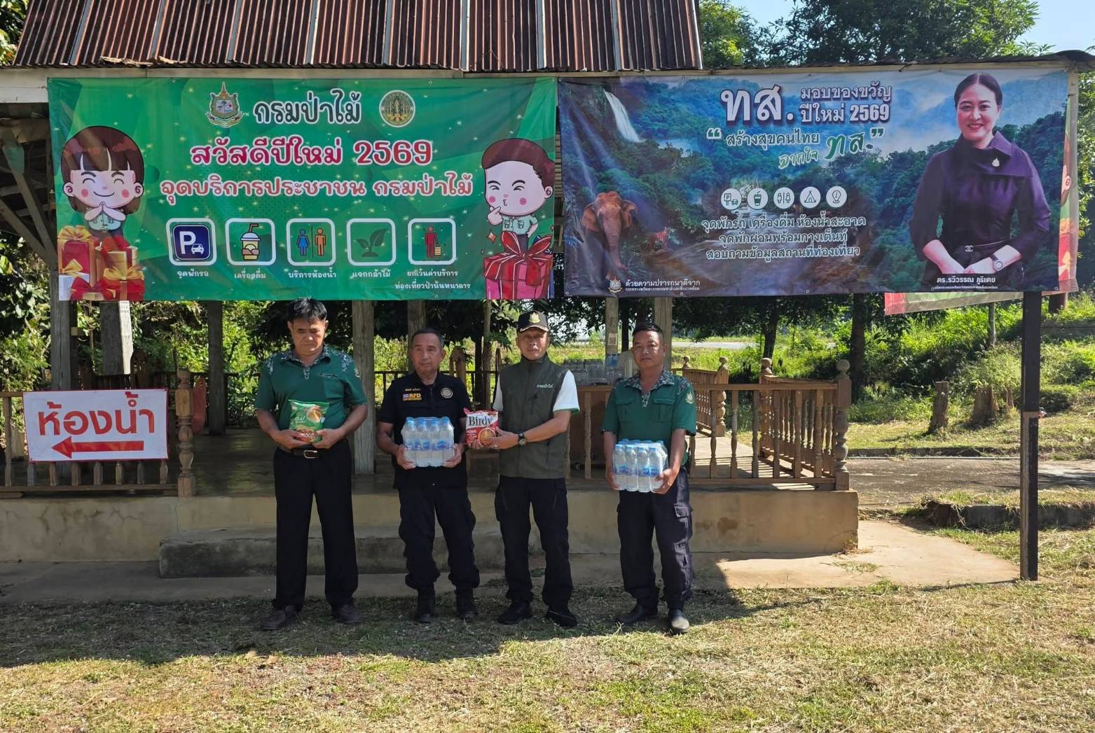 ทั้งนี้ ตามนโยบายกระทรวงทรัพยากรธรรมชาติและสิ่งแวดล้อม(ทส.)มอบของขวัญปีใหม่ 2569 “ทส. สร้างสุขคนไทย จากใจ ทส.” โดย ดร.รวีวรรณ ภูริเดช ปลัดกระทรวงทรัพยากรธรรมชาติและสิ่งแวดล้อม และนายนิกร ศิรโรจนานนท์ อธิบดีกรมป่าไม้ ร่วมบริการประชาชน ได้แก่ จุดพักรถ เครื่องดื่ม บริการห้องน้ำ แจกกล้าไม้ และยกเว้นค่าบริการท่องเที่ยวป่านันทนาการ และวันนี้ได้มอบ กาแฟ และน้ำดื่ม ให้แก่เจ้าหน้าที่ประจำจุดบริการ เพื่อเป็นขวัญกำลังใจและใช้บริการประชาชนให้แก่ประชาชนผู้สัญจรอีกด้วย