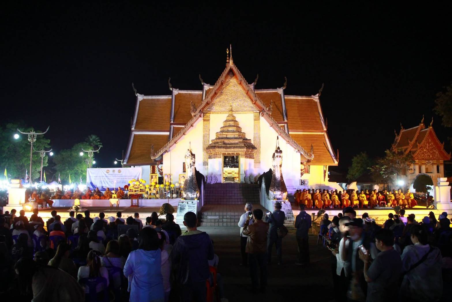 บรรยากาศภายในพิธีเต็มไปด้วยพลังแห่งศรัทธา มีพุทธศาสนิกชนชาวจังหวัดน่าน พร้อมด้วยนักท่องเที่ยวทั้งชาวไทยและชาวต่างชาติ เข้าร่วมสวดมนต์ เจริญจิตตภาวนาอย่างเนืองแน่น ท่ามกลางความงดงามของ วัดภูมินทร์ วัดคู่บ้านคู่เมืองของจังหวัดน่าน
