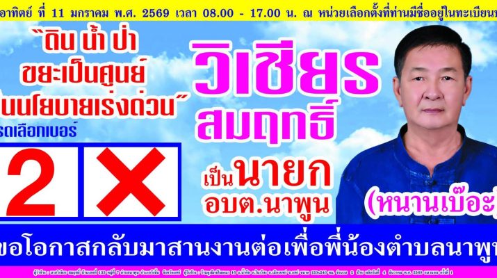 มีหนาว ! “วิเชียร (หนานเบ๊อะ) สมฤทธิ์” ผู้สมัครนายก อบต.นาพูนเบอร์ 2 ชาวนาพูน บอกขอให้เชื่อมั่น เลือกคนมาแก้ปัญหา ชัดเจน