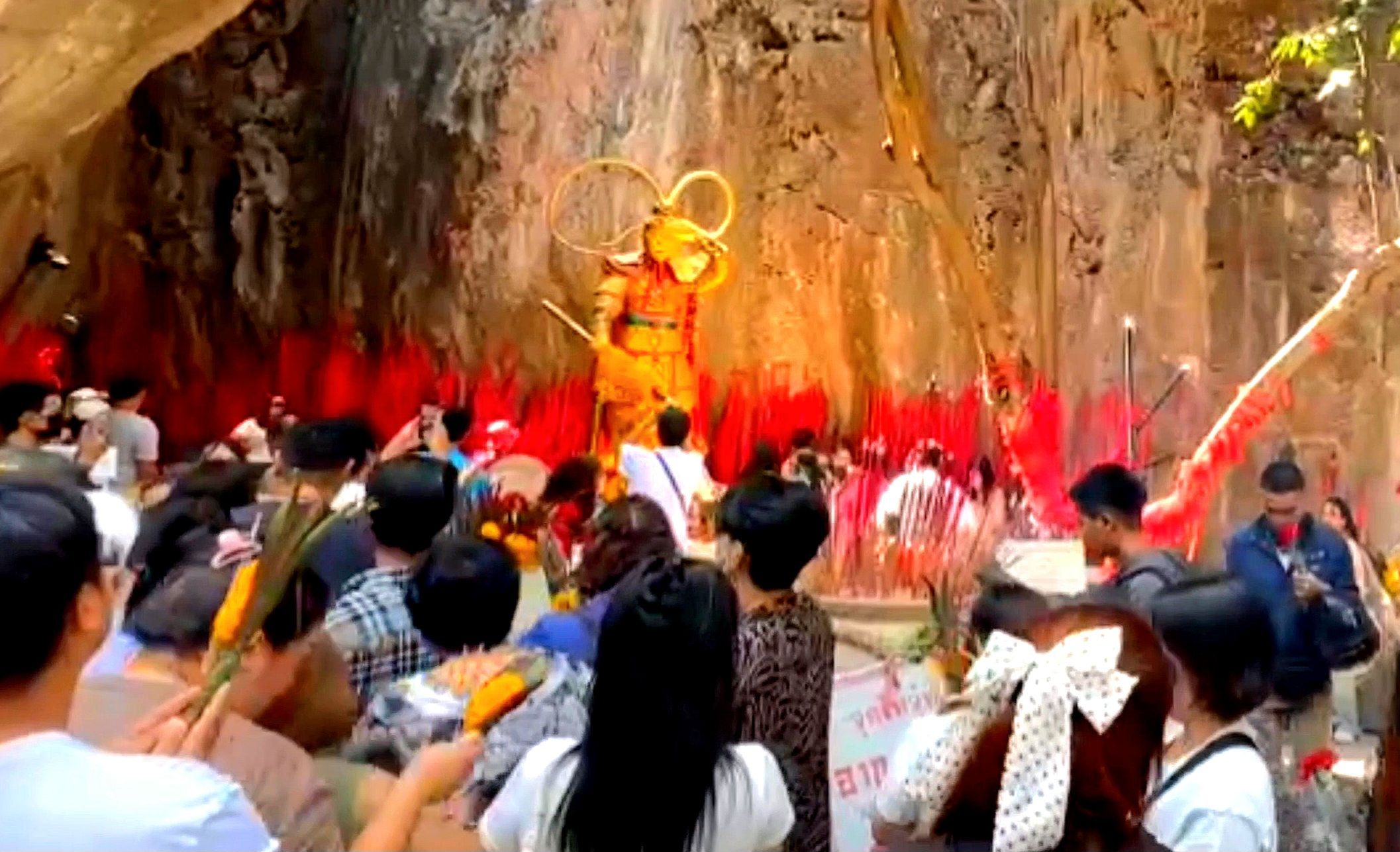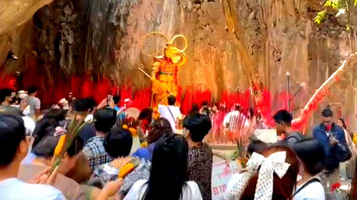 “เทพเจ้าเห้งเจีย” อุทยานพระใหญ่ถ้ำเขาชะอางค์ อ.ด่านมะขามเตี้ย จ.กาญจนบุรี เปิดทุกวัน เวลา 08.00–17.00 น.หรือโทร.091-780-1168