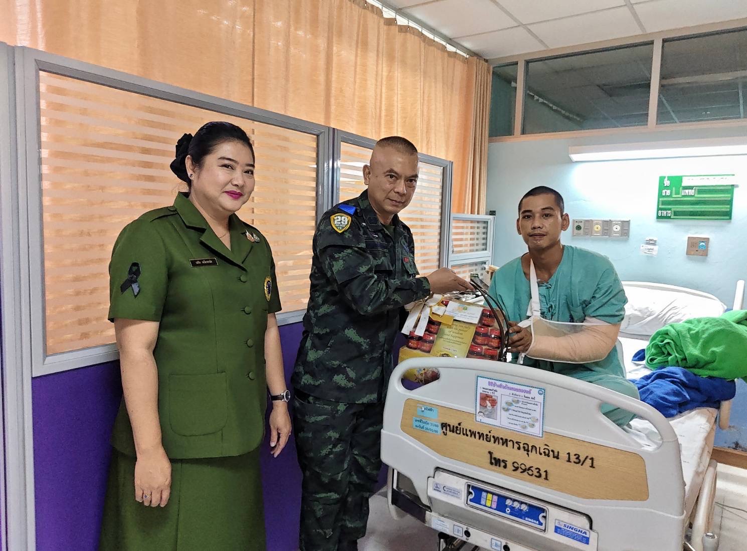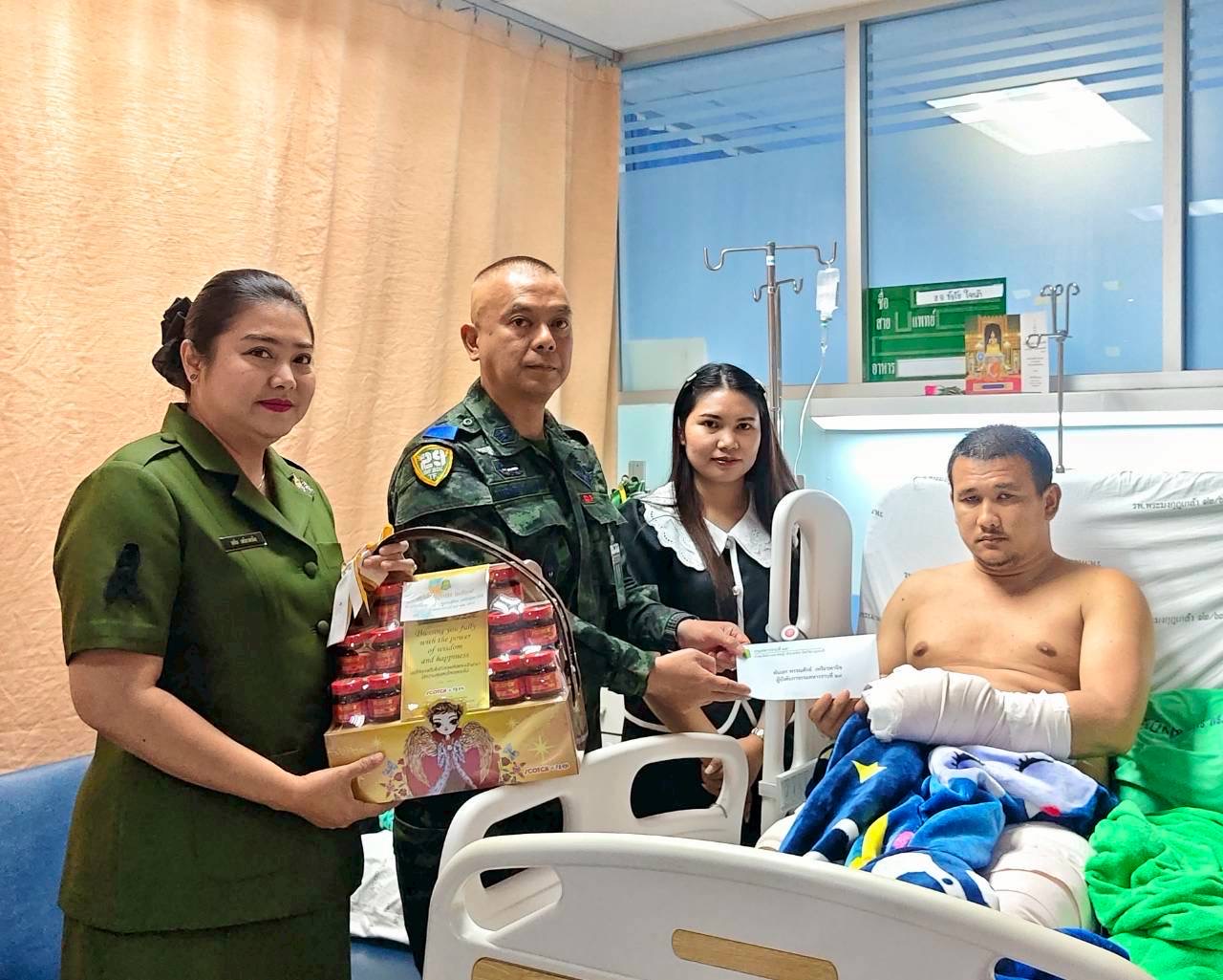 วันนี้ 5 มกราคม 2569 ผู้สื่อข่าวรายงานว่า พันเอกพรรณศักย์ เพรียวพานิช ผู้บังคับการกรมทหารราบที่ 29 ในฐานะ ผู้บังคับการกรมทหารราบเฉพาะกิจที่ 29 พร้อมด้วย คุณ รสริน เพรียวพานิช ประธานสมาคมแม่บ้านทหารบก สาขา ร.29 เดินทางไปเยี่ยมให้กำลังใจกำลังพลผู้ได้รับบาดเจ็บจากการปฏิบัติหน้าที่ปกป้องอธิปไตย ชายแดน ไทย – กัมพูชา ณ โรงพยาบาลพระมงกุฎเกล้า