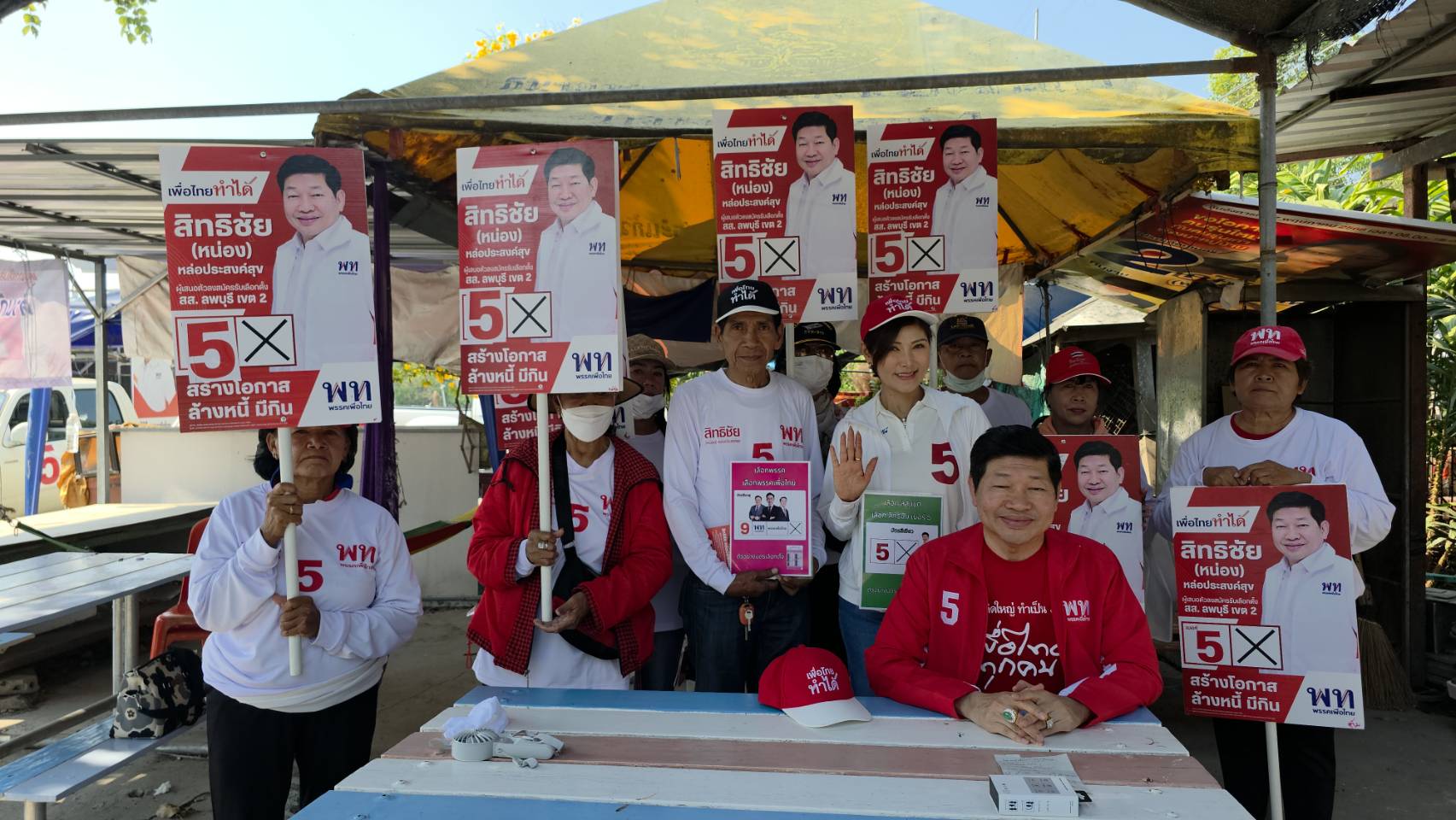 ซึ่งนายสิทธิชัย หล่อประสงค์สุข จากพรรคเพื่อไทย ได้ชิงความได้เปรียบด้วยการเลือกจุดสำคัญ ๆ ในการขึ้นป้ายหาเสียงเป็นการจองพื้นที่ไว้ก่อน นอกจากนี้ยังได้ลงพื้นที่หาเสียงแบบเคาะประตูบ้านพูดคุยกับประชาชนในระยะประชิดชี้แจงผลงานในสมัยที่ผ่านมาในการดูแลประชาชน รวมทั้งแก้ปัญหาสร้างความเจริญมาให้กับจังหวัดลพบุรีหลายโครงการผ่านตามขบวนการและยังชี้แจงนโยบายของพรรคเพื่อไทยด้วย โดยคาดหวังว่าจะกลับมานั่งในสภาผู้แทนราษฎรรับใช้ประชาชนอีกครั้ง