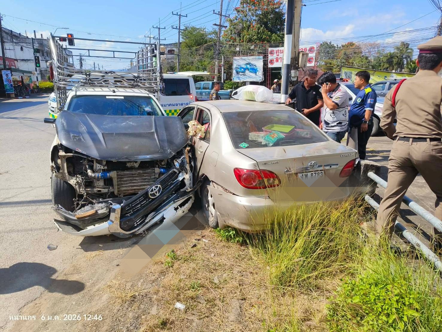 จากการตรวจสอบที่เกิดเหตุพบรถเก๋งสีบรอนซ์ทอง ทะเบียน นครราชสีมา ถูกชนบริเวณด้านซ้ายฝั่งผู้โดยสาร โดยรถกระบะคอกโตโยต้า ทะเบียน กรุงเทพมหานคร ทำให้รถเก๋งเสียหายหนัก และมี ผู้หญิงอายุ 57 ปี ติดอยู่ภายใน กู้ภัยช่วยออกมาได้และนำส่งรักษาตัว นอกจากนี้มี ไรเดอร์/ไลน์แมน ขับรถจักรยานยนต์ตามหลังมา พบเหตุแล้วเบรกกะทันหันจนรถล้ม ได้รับบาดเจ็บเพิ่มอีก 1 ราย