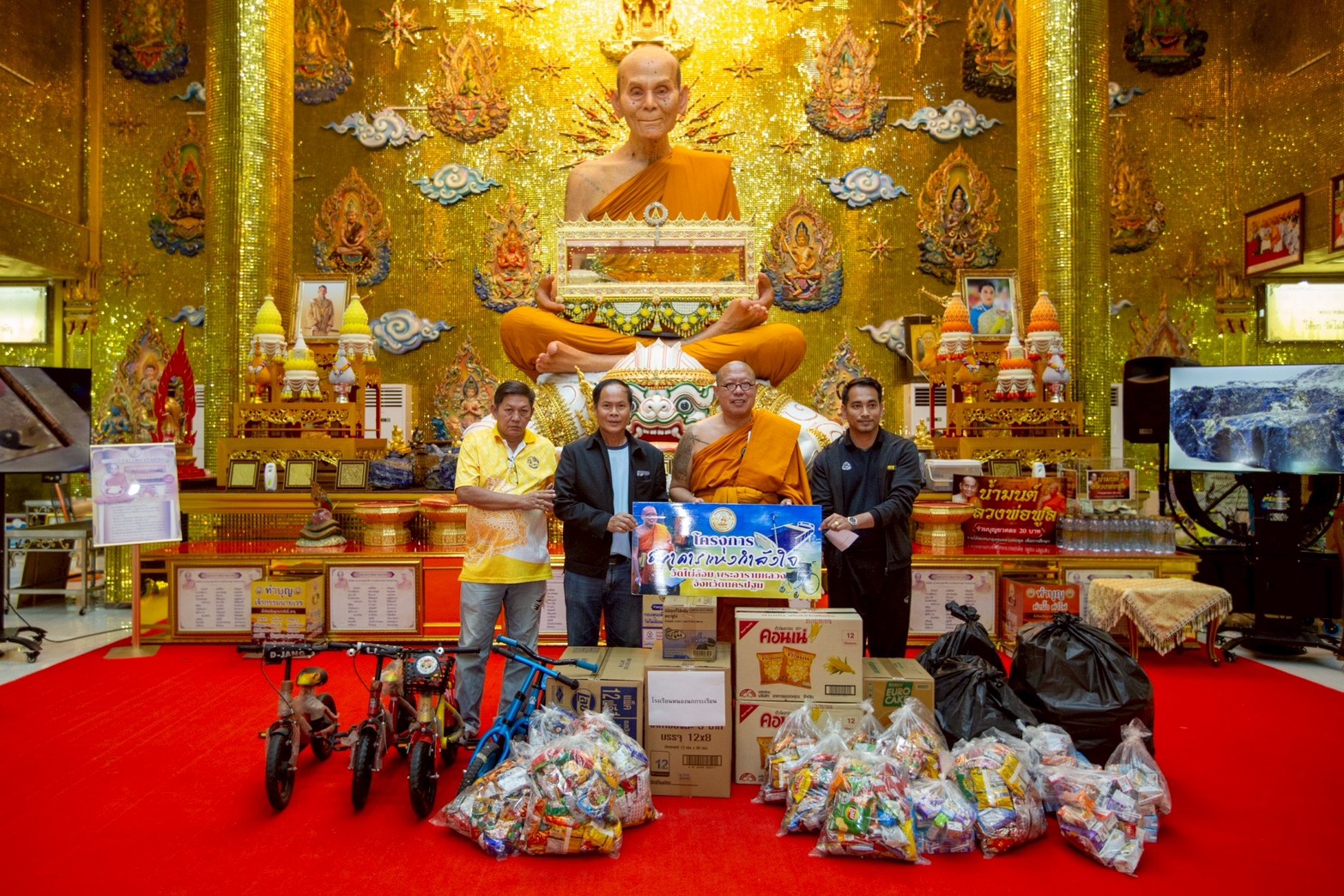 โดยที่วัดไผ่ล้อมพระอารามหลวง จังหวัดนครปฐม พระครูปลัดสิทธิวัฒน์ (หลวงพี่น้ำฝน) ผู้รักษาการแทนเจ้าอาวาสวัดไผ่ล้อมฯ ได้จัดเตรียมสิ่งของประเภทจักรยานปั่น และรถเข็นสำหรับเด็ก ซึ่งส่วนหนึ่งเป็นของที่ญาติโยมได้มีการจัดนำมาถวายแก้บนที่กุมารสมบัติ ซึ่งเป็นสิ่งศักดิ์สิทธิ์ ประจำวัดไผ่ล้อมฯ รวมถึงของเล่นและได้จัดอุปกรณ์สำหรับพัฒนาการเรียนรู้ ขนมสำหรับเด็กส่งมอบให้กับโรงเรียนและศูนย์พัฒนาเด็กในพื้นที่รอบวัดไผ่ล้อมรวมถึงในเขตเทศบาลนครนครปฐม อำเภอเมืองนครปฐม จังหวัดราชบุรี และจังหวัดกาญจนบุรี ประกอบด้วย