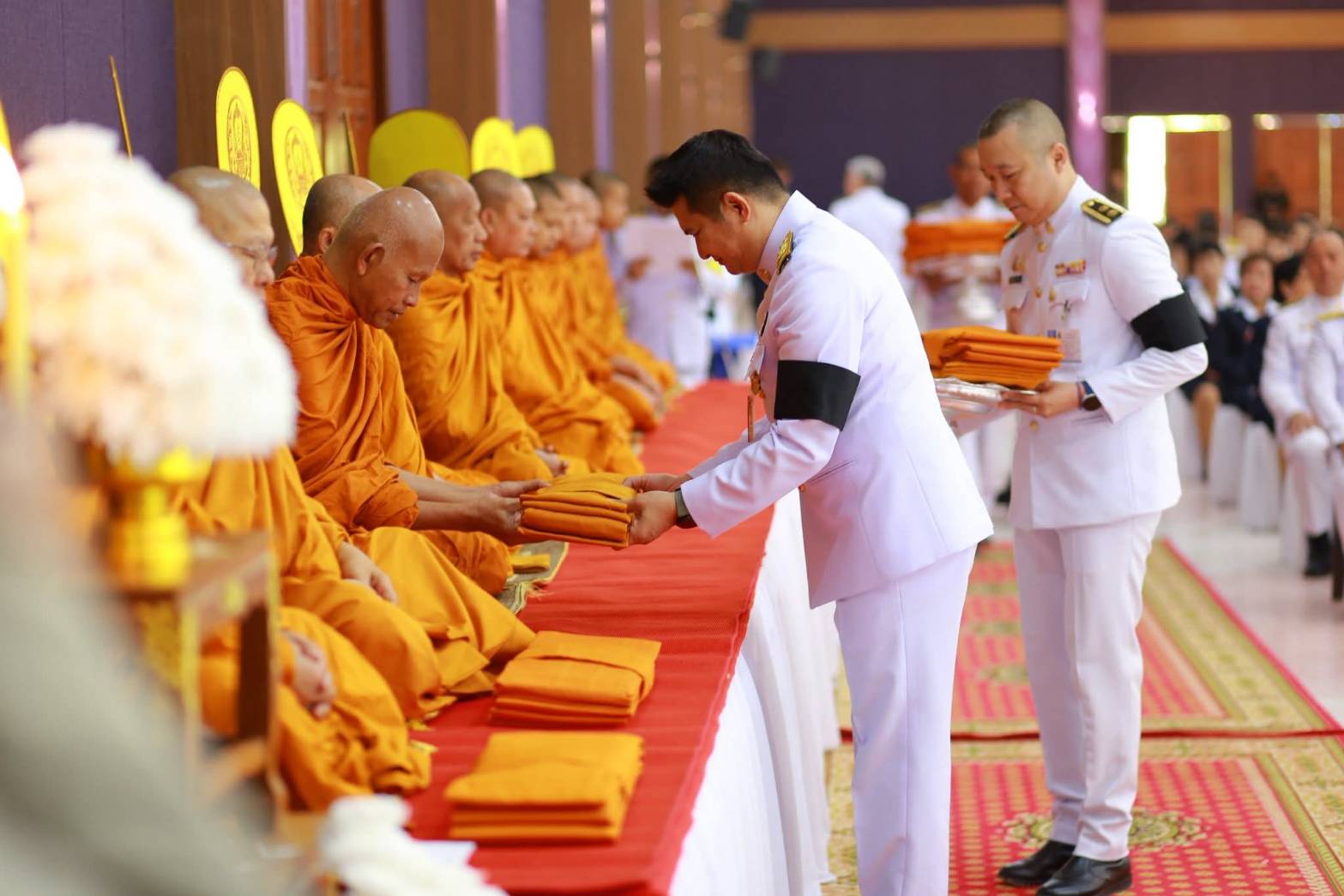 จากนั้น ผู้ว่าราชการจังหวัดน่านได้นำคณะข้าราชการและประชาชนร่วมทำบุญตักบาตรถวายพระราชกุศล บริเวณหน้าหอประชุมนันทพัฒน์ บรรยากาศเป็นไปอย่างสง่างามและเปี่ยมด้วยความสำนึกในพระมหากรุณาธิคุณ