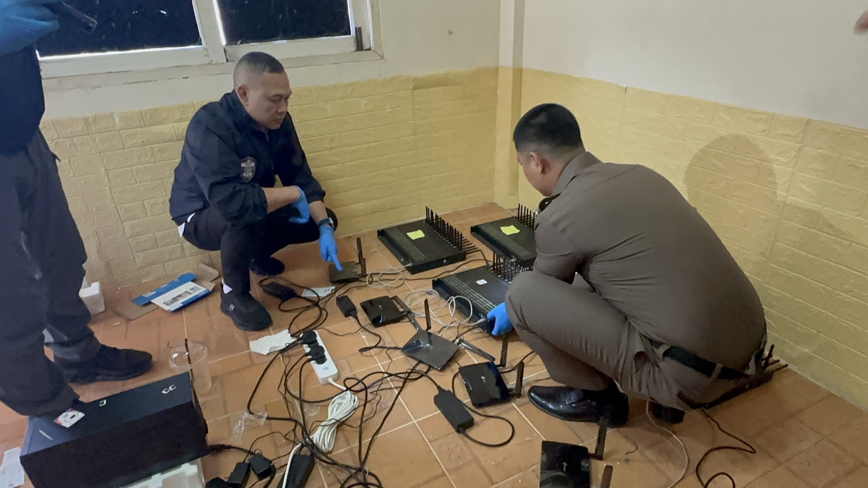 สืบเนื่องจากเมื่อวันที่ 5 พ.ย.68 ที่ผ่านมา จนท.ได้ตรวจยึด SIM Box ที่ จ.บึงกาฬ และ จ.มุกดาหาร พบความเชื่อมโยงถึงเป้าหมายที่ตั้ง SIM Box ในพื้นที่ อ.ท่าบ่อ จ.หนองคาย จนท.ได้รวบรวมพยานหลักฐาน และนำหมายค้นศาลจังหวัดหนองคาย ลงวันที่ 6 ม.ค.69 เข้าตรวจค้นบ้านหลังดังกล่าว สามารถยึดของกลางได้ดังนี้ เครื่องแปลงสัญญาณโทรศัพท์แบบใส่ซิมการ์ด (Sim box) 5 เครื่อง (32 ช่อง/เครื่อง),เครื่องกระจายสัญญาณอินเตอร์เน็ตแบบไร้สายยี่ห้อ P link (Router wifi) ชนิดใส่ซิมการ์ด 5 เครื่อง,ปลั๊กไฟ ยี่ห้อ Gongnui 2 อัน , เครื่องสำรองไฟยี่ห้อ techfine 2 เครื่อง , ซิม DTAC 5 ซิม (สวมใส่อยู่ใน router wifi) , กล้องวงจรปิดยี่ห้อ tapo 1 ตัว , ฝาครอบ power amplifier ตัวเครื่อง simbox 5 ชิ้น ,ฝาปิดหน้า power amplifier ตัวเครื่อง