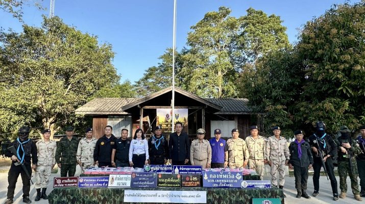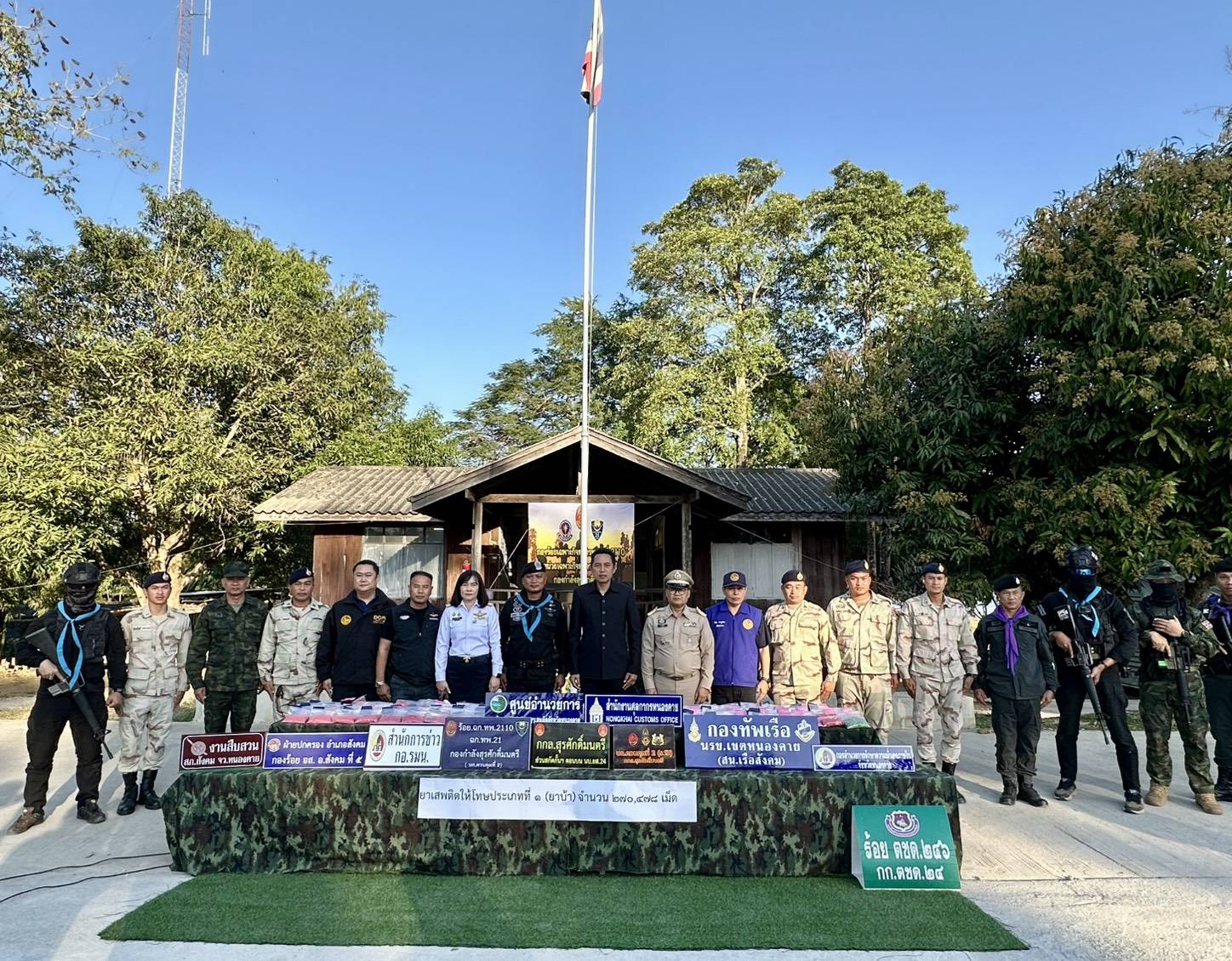 วันที่ 8 ม.ค.69 ที่ กองร้อย.ฉก.ทพ.2110 ฉก.ทพ 21บก.ควบคุมที่ 2 (ร.13) กกล.สุรศักดิ์มนตรี นาย ไพรฑูรย์ มหาชื่นใจ รอง ผวจ.หนองคาย ร่วมกับ ร.อ.ยุทธณา สีไชย์ ผบ.ร้อย.ฉก.ทพ.2110,น.ส.วรรณา ผู้อุตส่าห์ นายด่านศุลกากรหนองคาย,นายชัยสิทธิ์ คำภาจันทร์ หน.ศูนย์อำนวยการป้องกันและปราบปรามยาเสพติดจังหวัดหนองคาย และหน่วยงานความมั่นคง แถลงข่าวการตรวจยึดยาบ้า กว่า 268,000 เม็ด ที่ลักลอบนำเข้าจากประเทศเพื่อนบ้าน