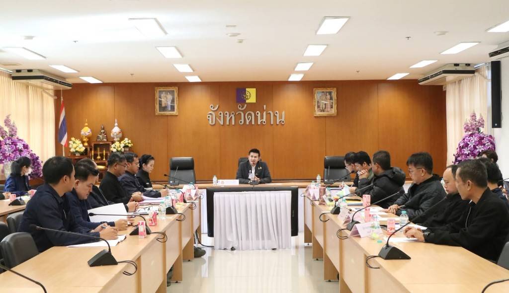 วันที่ 9 มกราคม 2569 เวลา 09.30 น. ที่ห้องประชุมพระเจ้าสุริยพงษ์ผลิตเดช ชั้น 3 ศาลากลางจังหวัดน่าน นายชัยนรงค์ วงศ์ใหญ่ ผู้ว่าราชการจังหวัดน่าน เป็นประธานการประชุมติดตามความคืบหน้าและเตรียมข้อมูลโครงการบริหารจัดการน้ำของจังหวัด เพื่อนำเสนอ พล.อ.อ. สถิตย์พงษ์ สุขวิมล ราชเลขานุการในพระองค์พระบาทสมเด็จพระเจ้าอยู่หัว และเลขาธิการพระราชวัง