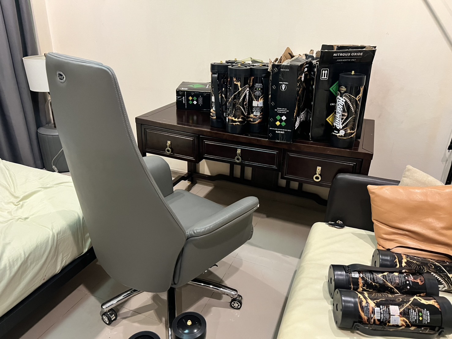 จนกระทั่ง เวลาประมาณ 16.00 น. ของวันที่ 9 มกราคม 2569 เจ้าหน้าที่ตำรวจ ได้สังเกตเห็น บุคคลต่างด้าวที่มีตำหนิรูปพรรณคล้ายชาวจีน เดินออกมาจากบริเวณหน้าหมู่บ้าน จึงได้เข้าแสดงตัวเป็นเจ้าหน้าที่ตำรวจ โดยแสดงบัตรข้าราชการให้ดู ก่อนขอตรวจสอบเอกสารประจำตัว ผลการตรวจสอบหนังสือเดินทาง จนทราบชื่อว่า นายต้าหัว อายุ 22 ปี สัญชาติจีน โดยไม่พบข้อมูลการเดินทางเข้ามา ในราชอาณาจักรแต่อย่างใด เจ้าหน้าที่ตำรวจจึงได้แจ้งข้อหา “เป็นคนต่างด้าวเข้ามาและอยู่ในราชอาณาจักรโดยไม่ได้รับอนุญาต” แต่ระหว่างถูกควบคุมตัว นายต้าหัว กลับมีท่าทีพิรุธ พยายามลบข้อมูลบางอย่างในโทรศัพท์ เจ้าหน้าที่จึงได้ตรวจสอบโทรศัพท์พบข้อมูลการติดต่อและรูปภาพแก๊สไนตรัสออกไซด์ หรือแก๊สหัวเราะ ในอัลบัม จึงได้ขอตรวจสอบบ้านพักที่นายต้าหัวพักอาศัยอยู่ เพื่อความบริสุทธิ์ใจ ซึ่งนายต้าหัว ก็ยินยอมแต่โดยดี ผลการตรวจค้นพบถังบรรจุแก๊สไนตรัสออกไซด์จำนวน 19 ถัง สอบถามให้การว่ามีไว้เพื่อเสพเอง