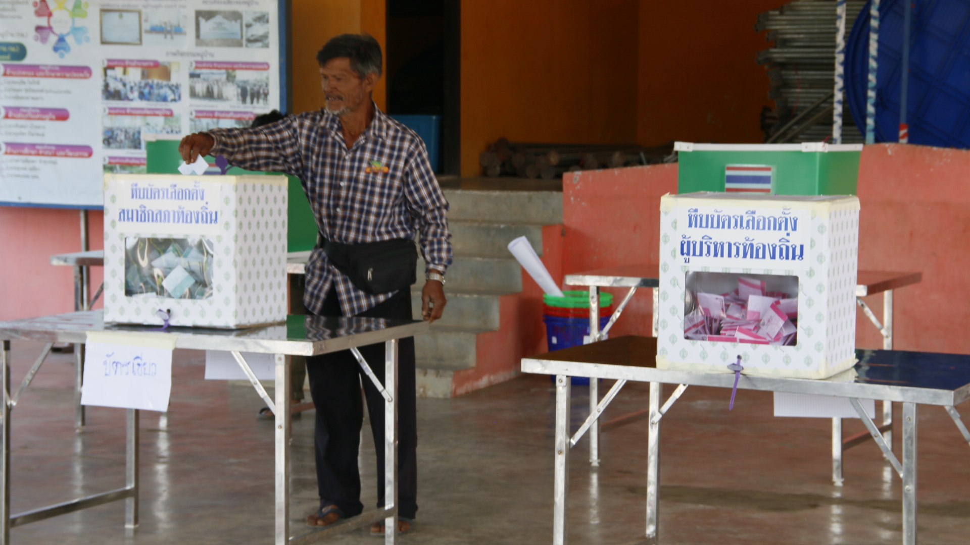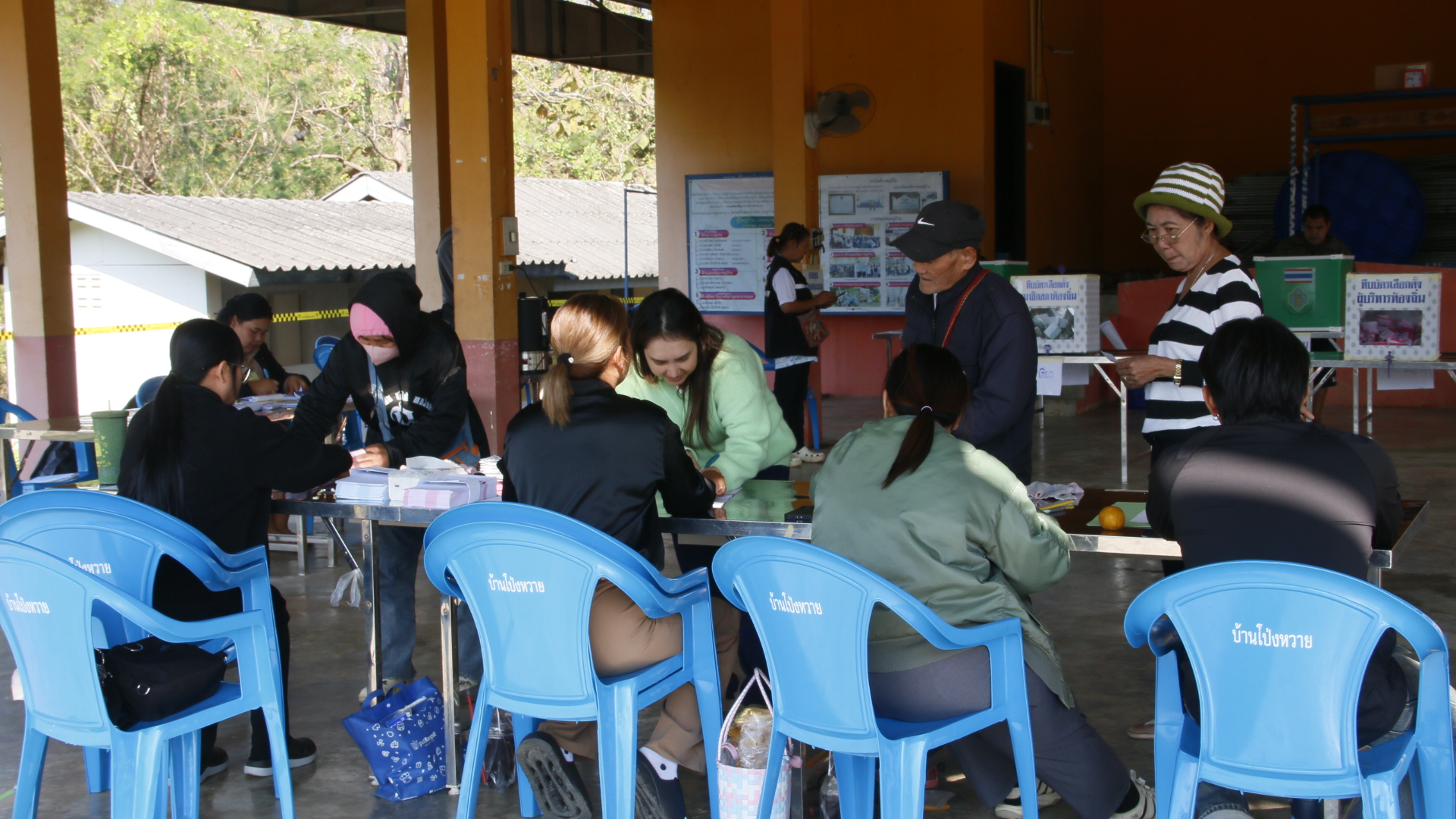 กาญจนบุรี – อากาศหนาวเหน็บทุกคนสวมใส่เสื้อกันหนาวเดินเข้าคูหาลงคะแนนเลือก นายก และสมาชิกอบต. มีหลากหลายอาชีพลงแข่งขัน