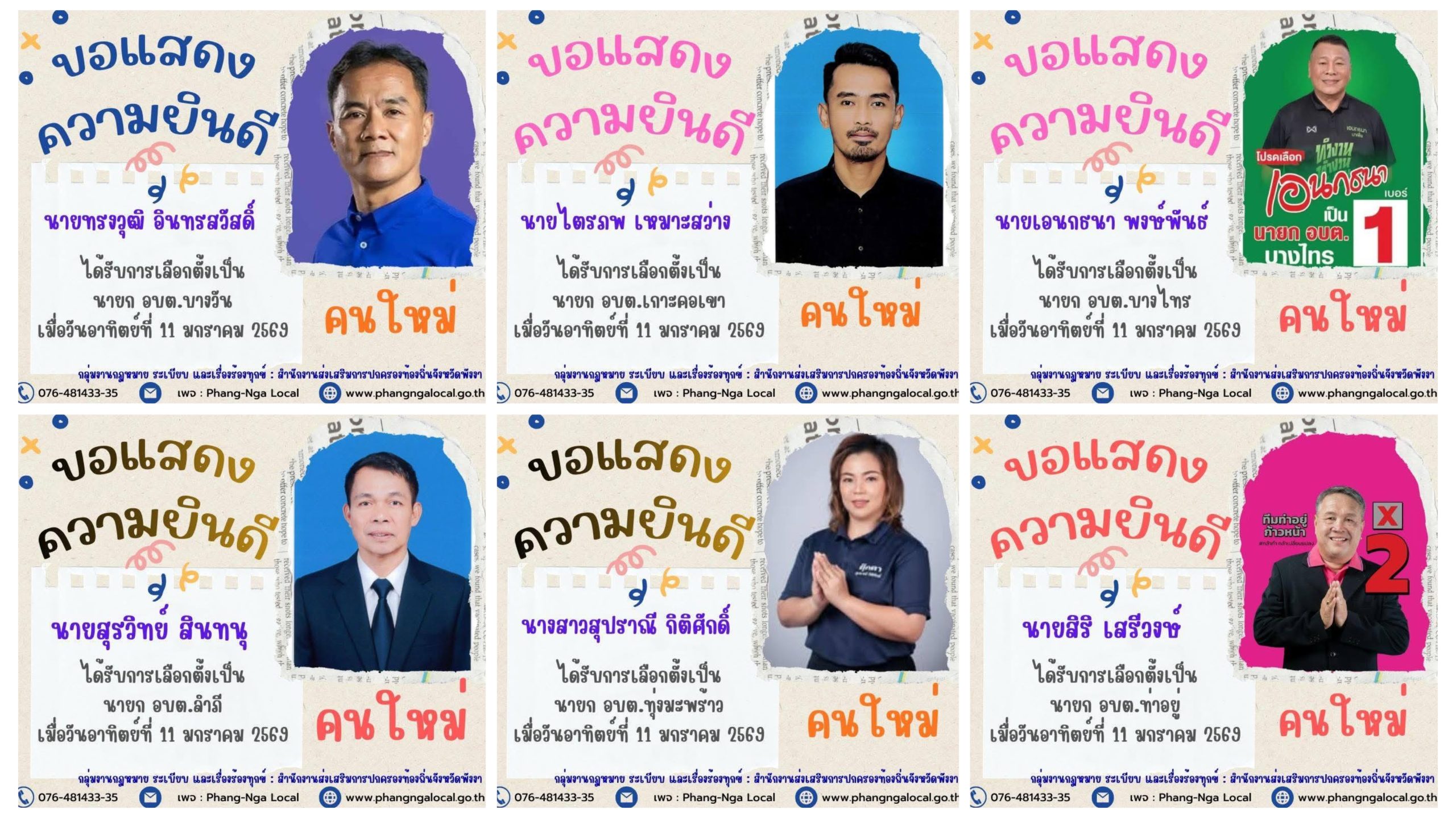 อำเภอตะกั่วป่า /ตำบลบางไทร นายเอนกธนา พงษ์พันธ์ ชนะการเลือกตั้ง /อบต.เกาะคอเขา นายไตรภพ เหมาะสว่าง ชนะการเลือกตั้ง /ตำบลบางม่วง นายธงชัย หันช่อ รักษาแชมป์ไว้ได้ / ตำบลโคกเคียน นายสุเทพ ทองถาวร รักษาแชมป์ไว้ได้
