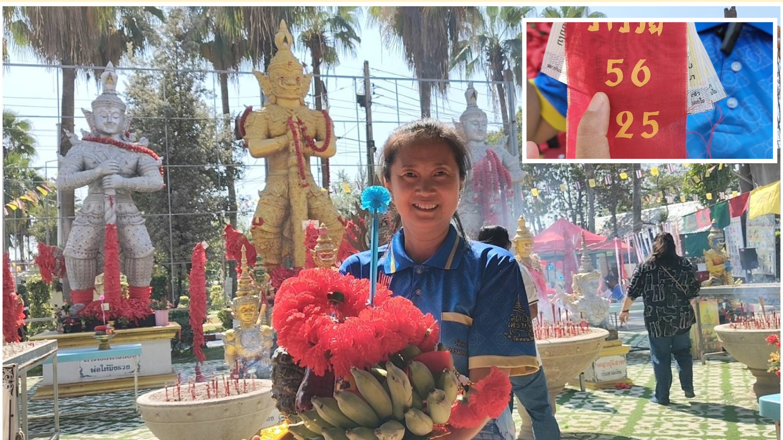 ขณะที่นางสาวอารยา สวนแก้ว เดินทางมาจากย่านคลอง 4 อำเภอลำลูกกา นำประทัดจำนวน 5,000 นัด พร้อมเครื่องเซ่นไหว้ชุดใหญ่มาแก้บนกับท้าวเวสสุวรรณ หลังจากลูกสาวสอบเข้าคณะศิลปศาสตร์ สาขาอุตสาหกรรมบริการการบิน ของมหาวิทยาลัยชื่อดังแห่งหนึ่งในจังหวัดปทุมธานีได้สำเร็จ