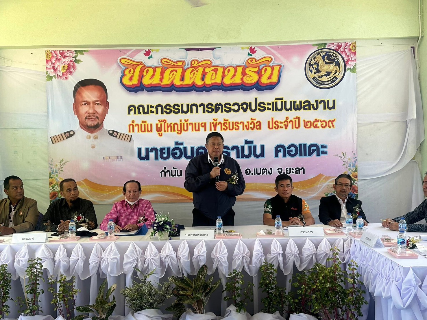 โดยคณะกรรมการได้ดำเนินการตรวจประเมินผลงานของ นายอับดุลรามัน คอแดะ กำนันตำบลธารน้ำทิพย์ อำเภอเบตง จังหวัดยะลา ซึ่งเป็นผู้เข้ารับการตรวจประเมินตามหลักเกณฑ์ที่กำหนด ซึ่งการตรวจประเมินเป็นไปด้วยความเรียบร้อย โปร่งใส และสะท้อนถึงความมุ่งมั่นตั้งใจของผู้นำท้องที่ในการปฏิบัติหน้าที่เพื่อประโยชน์สุขของประชาชนและการพัฒนาชุมชนอย่างยั่งยืน
