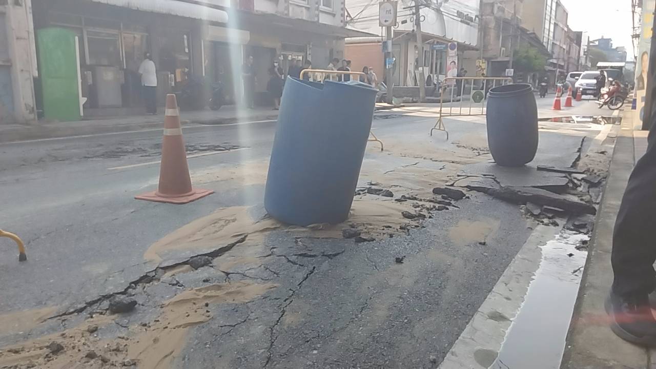 เกิดเหตุถนนทรุดตัวเป็นวงกว้างบริเวณปากซอยอินทามระ 30 – 28 ถนนประชาสุข เมื่อช่วงเช้ามืดที่ผ่านมา สาเหตุเบื้องต้นพบท่อประปาแตก เจ้าหน้าที่สั่งปิดการจราจรด่วน กระทบรถติดสะสมถึงถนนวิภาวดีรังสิต
