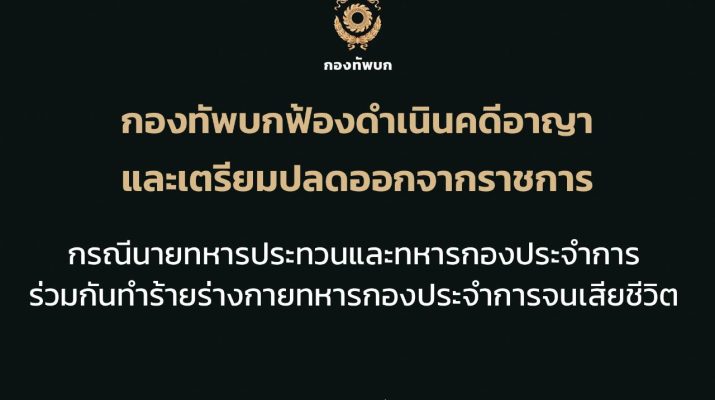 เมื่อวันที่ 11 ม.ค. 69 กองทัพบกได้รับรายงานเหตุการณ์กรณีทหารกองประจำการ สังกัดกองพันพัฒนาที่ 2 เสียชีวิต ซึ่งมีสาเหตุมาจากการถูกทำร้ายร่างกายโดยนายทหารประทวนและทหารกองประจำการในหน่วยสังกัดเดียวกัน