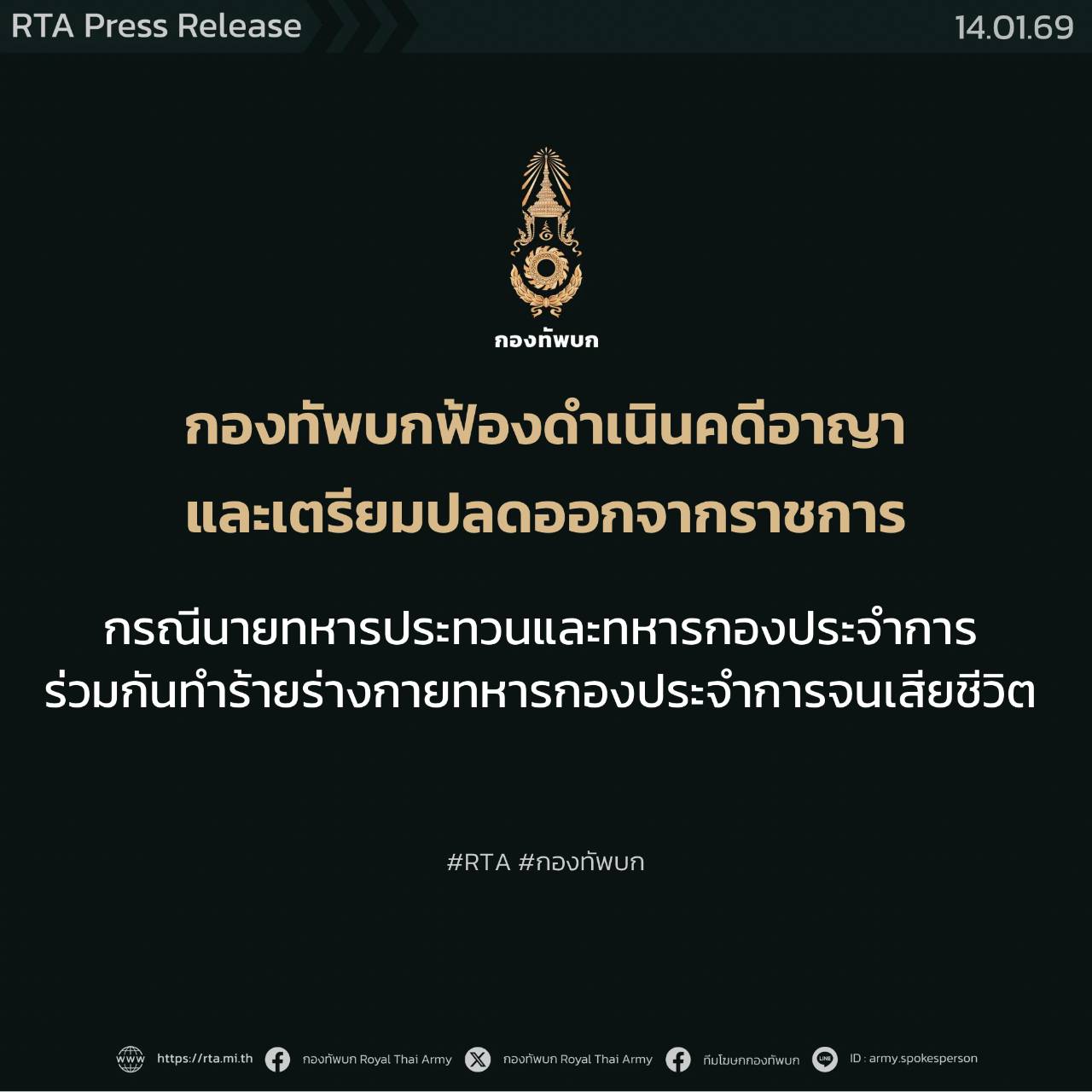 ศูนย์ประชาสัมพันธ์กองทัพบก โดยทีมโฆษกกองทัพยก, 14 มกราคม 2569