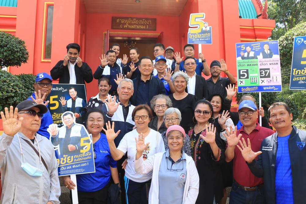 จากนั้น นายอนุทินและคณะได้ขึ้นรถแห่พบปะประชาชนภายในตลาดเมืองพังงา ก่อนเดินทางไปไหว้สักการะศาลหลักเมืองพังงา และเจ้าแม่สายทอง เพื่อความเป็นสิริมงคล โดยนายอนุทินได้จุดเทียนถวายเป็นชุด 3 เล่ม และ 7 เล่ม ผูกผ้าสีที่หลักเมือง พร้อมลั่นฆ้องจำนวน 37 ครั้ง พร้อมประกาศขอแรงสนับสนุนจากประชาชนเพื่อให้พรรคภูมิใจไทยคว้า 2 ที่นั่ง สส.จังหวัดพังงา