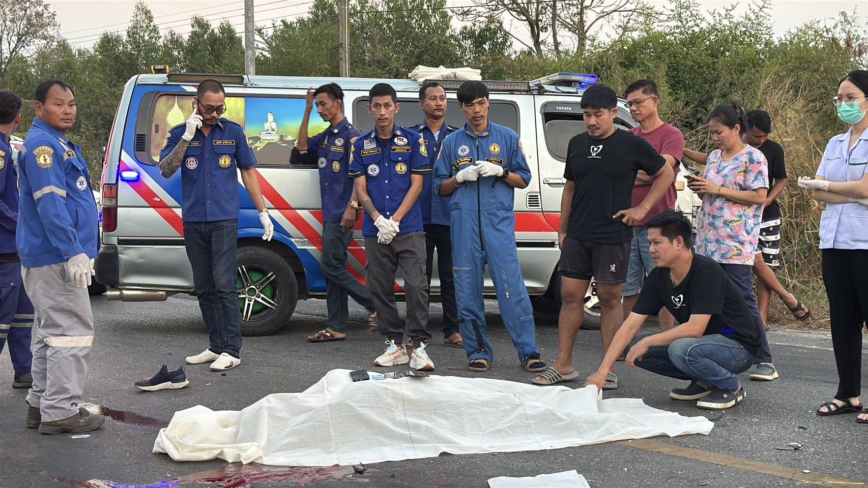 ที่เกิดเหตุพบเป็นถนนสองเลนวิ่งสวนกันบนถนนพบร่างผู้เสียชีวิต 2 ราย ทั้งคู่สภาพแขนขาผิดรูป รายแรกคือนายไพศาล พูลชื่น อายุ 44 ปี เป็นชาว ต.หนองลาน อ.ท่ามะกา จ.กาญจนบุรี รายที่สองคือนายธีรพล รื่นจิต อายุ 22 ปี เป็นชาว ต.เขาสามสิบหาบ อ.ท่ามะกา จ.กาญจนบุรี ใกล้กันยังพบรถจักรยานยนต์ ฮอนด้า MSX125 สีแดง และจักรยานยนต์ ฮอนด้า เวฟ 110 สีน้ำเงินดำ สภาพพังยับทั้งรถจอดล้มอยู่ในที่เกิดเหตุ