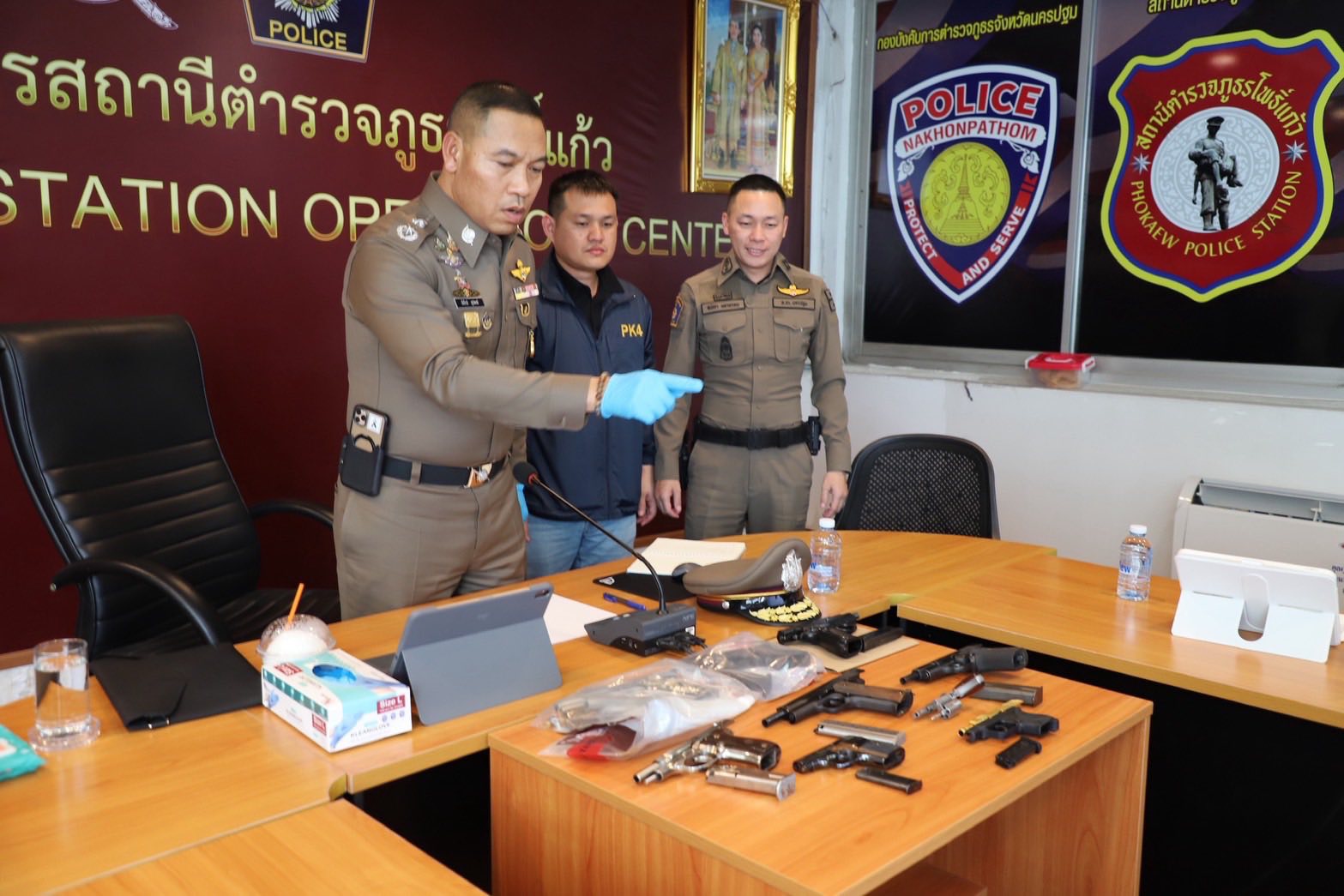 ในวันนี้ (14 ม.ค.69) ตำรวจภูธรจ.นครปฐม ร่วมกับ บก.สส.ภ.7 และ สภ.โพธิ์แก้ว ได้ร่วมกันปฏิบัติการ “พิทักษ์นครปฐมทลายแก๊งค์ทรชน MAD & DOG“ โดยได้ดำเนินการตรวจค้นบ้านของกลุ่มเป้าหมายในคดี แก๊งค์ MAD & DOG รวมจำนวน 7 เป้าหมาย ผลการปฏิบัติสามารถตรวจยึดอาวุธปืนมีทะเบียนได้ จำนวน 10 กระบอก จึงยึดมาเพื่อตรวจสอบในคดีนี้ต่อไป
