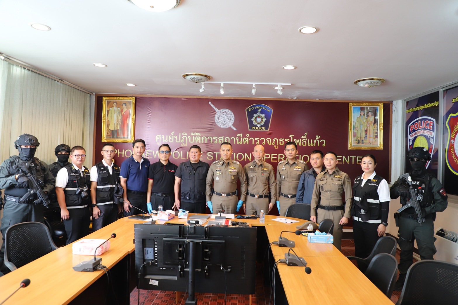 สามารถจับกุมตัวผู้ต้องหา 3 รายคือ 1.นายพสิทธิ์ จอกสุวรรณ อายุ 40 ปี 2.นายโสภณ วิชิตขจรพล อายุ 52 ปี 3.นายนิรุติ โตสัจจะ อายุ 42 ปี และตรวจยึด ของกลางที่ใช้ในการก่อเหตุ 1.อาวุธปืนพกสั้น ขนาด 9 มม. ยี่ห้อ GLOCK ทะเบียน สพ.09/4700002 (ของนายพสิทธิ์ฯ) 2.อาวุธปืนพกสั้น ขนาด 11 มม. ยี่ห้อ COLT ทะเบียน ก.3/8417 (ของนายโสภณฯ) 3.อาวุธปืนพกสั้น ขนาด 9 มม. ยี่ห้อ CZ 75 B ทะเบียน กท.39119149 (ของนายนิรุตฯ) โดยแจ้งข้อกล่าวหา“พยายามฆ่าผู้อื่น, มีอาวุธปืนและเครื่องกระสุนปืนไว้ในครอบครองโดยไม่ได้รับอนุญาต, พกพาอาวุธปืนไปในเมือง หมู่บ้าน หรือทางสาธารณะโดยไม่มีเหตุอันควร, ยิงปืนในที่สาธารณะ”