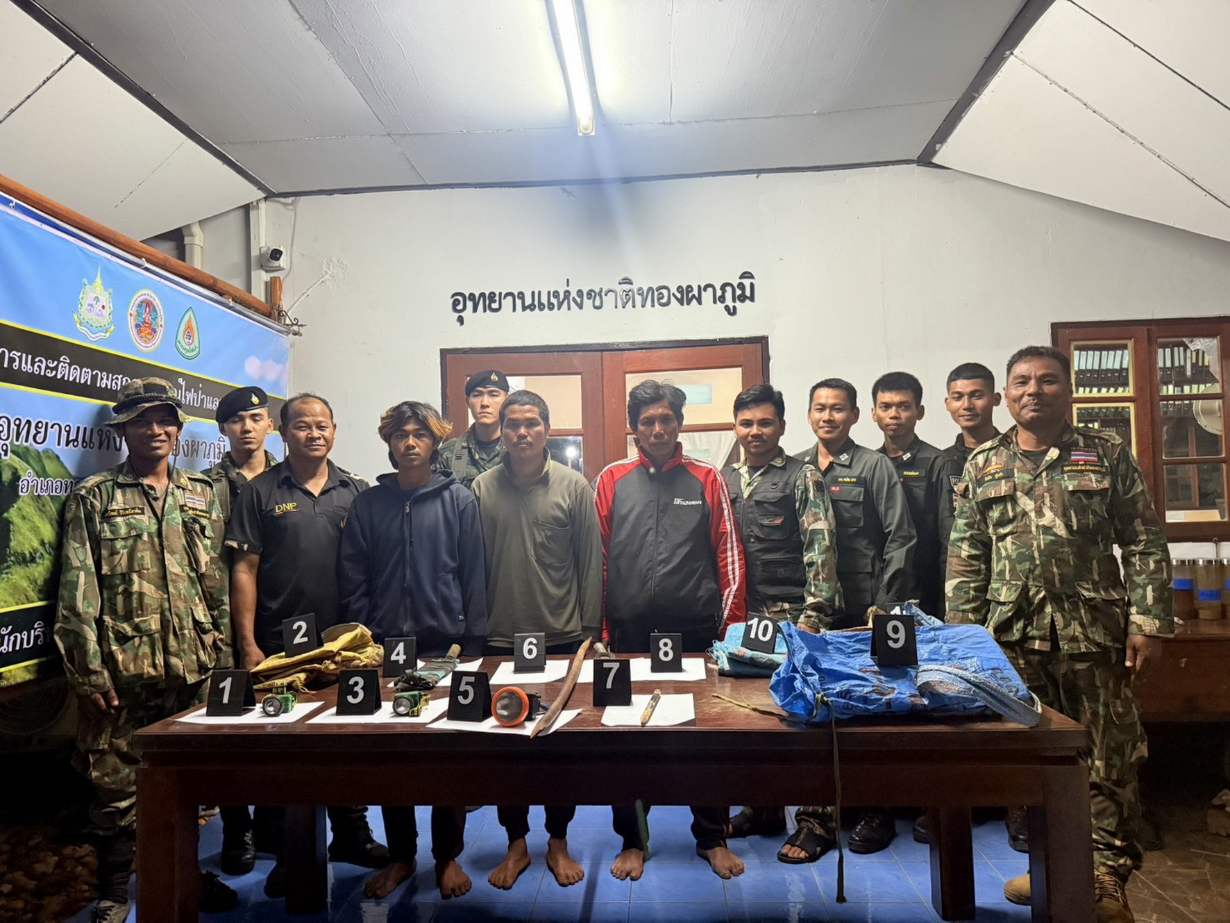 นายยุทธพงค์ ดำศรีสุข หัวหน้าอุทยานแห่งชาติทองผาภูมิ กล่าวว่า ล่าสุดเมื่อวันที่ 11 ม.ค.69 เจ้าหน้าที่อุทยานแห่งชาติทองผาภูมิ เจ้าหน้าที่ทหารหน่วยเฉพาะกิจลาดหญ้า กองกำลังสุรสีห์ และเจ้าหน้าที่ร้อย ตชด.135 ได้ร่วมกันออกลาดตระเวนเพื่อป้องกันการทำลายทรัพยากรด้านป่าไม้และสัตว์ป่า ด้วยการใช้เรือตรวจการไปขึ้นบกที่บ้านปิล๊อกคี่ หมู่ 4 จากนั้นใช้รถจักรยานยนต์วิบากลาดตระเวนไปตามเส้นทางทำไม้เก่า ลัดเลาะไปตามร่องห้วยและไหล่เขา ซึ่งเป็นป่ารกทึบ ไม่มีหมู่บ้าน ผ่านพื้นที่อุทยานแห่งชาติเขาแหลมไปทางทิศตะวันตก ประมาณ 16 กิโลเมตร