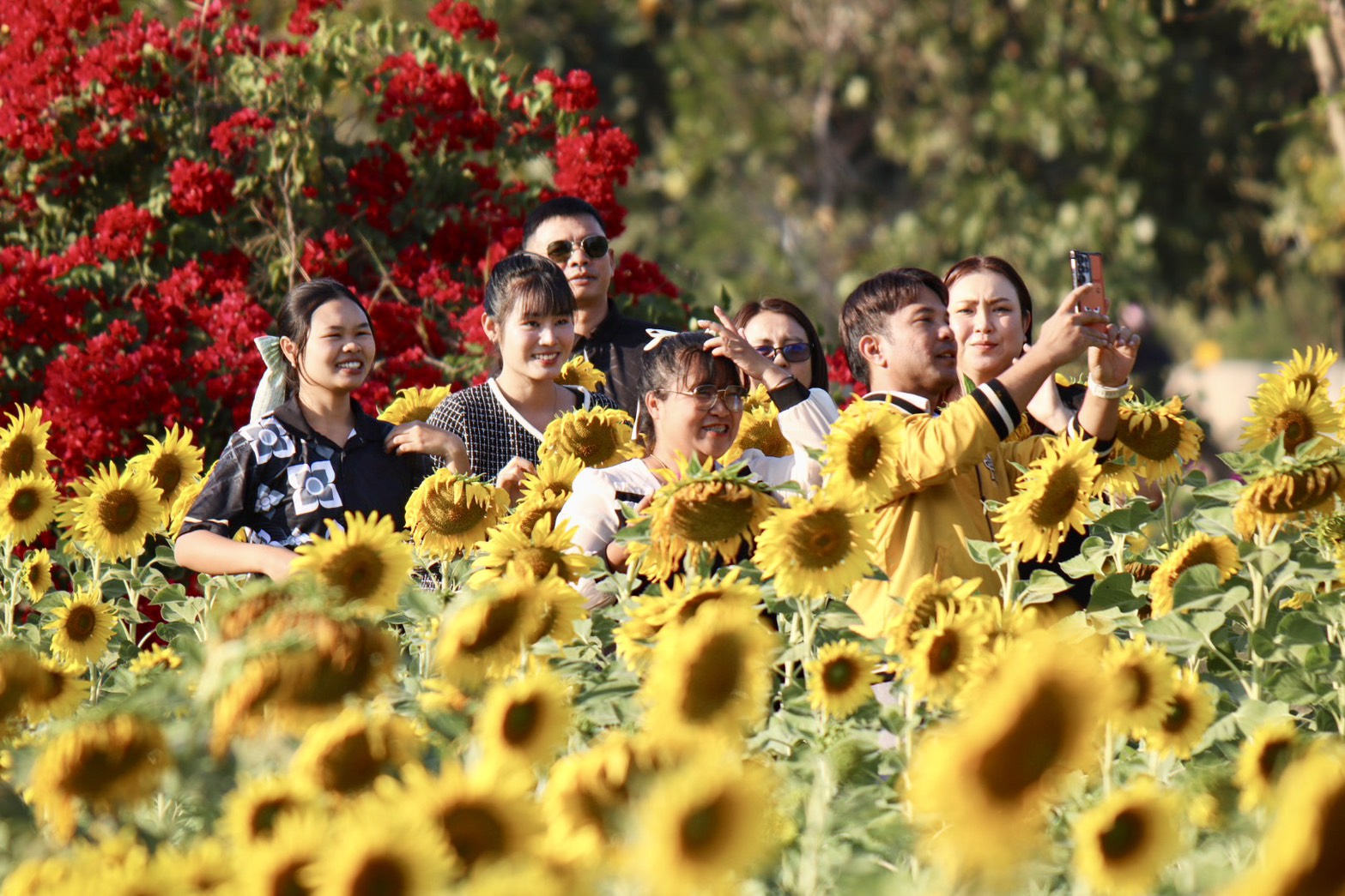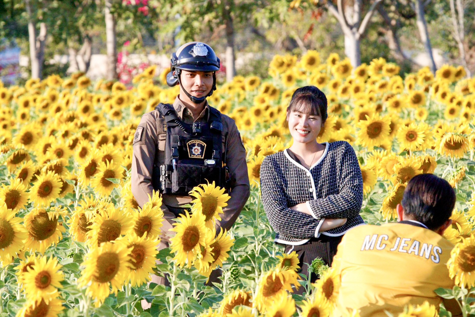 ทุ่งทานตะวันออกดอกบานสะพรั่งเหลืองอร่ามสวยงามรับแสงแดดยามเย็น พร้อมให้ประชาชนที่สัญจรไปมาได้ถ่ายรูปเพื่อเซลฟี่ เช็คอิน เก็บภาพสวยๆคู่กับดอกทานตะวันที่ปลูกโดยเทศบาลตำบลโกสุมพิสัย อำเภอโกสุมพิสัย จังหวัดมหาสารคาม บริเวณพื้นที่ด้านหน้า “บึงกุย” ถนนสายมหาสารคาม -โกสุมพิสัย