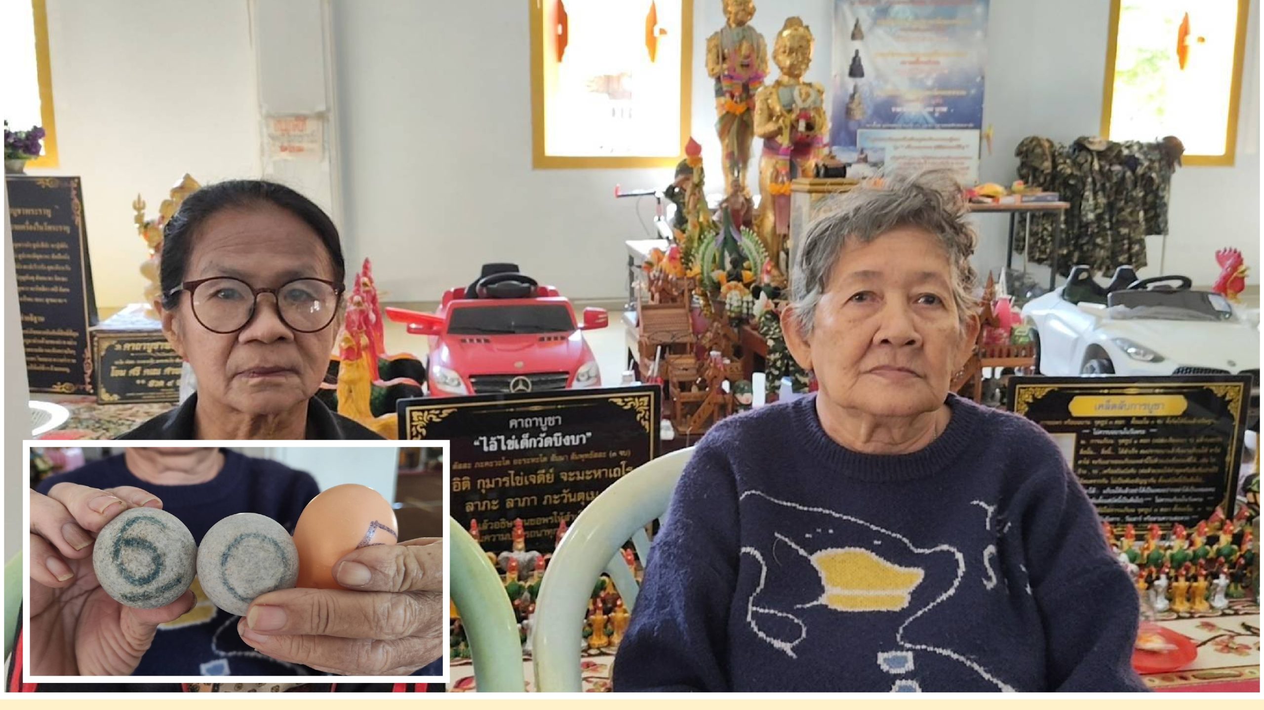ด้านคุณยายเพ็ญ วันเพ็ญ ใจสุวรรณ อายุ 78 ปี ผู้ที่ติดตามข่าวจากสถานีโทรทัศน์ไทยรัฐทีวี เดินทางมาจากย่านบางใหญ่ จังหวัดนนทบุรี เพื่อมาขอพรไอ้ไข่วัดบึงบา โดยคุณยายเพ็ญเล่าว่า ได้ทราบข่าวจากไทยรัฐทีวีว่าไอ้ไข่วัดบึงบาให้โชคแก่ผู้มาขอพรจนถูกรางวัลสลากกินแบ่งรัฐบาลมาแล้วหลายราย เมื่อได้เห็นข่าวจึงเกิดความศรัทธาและตัดสินใจเดินทางมาขอพรด้วยตนเอง