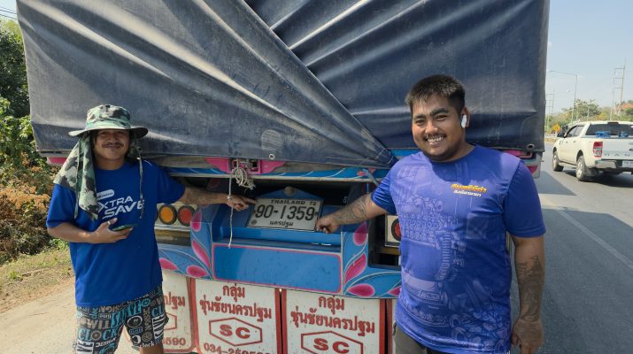 ผู้สื่อข่าวได้พบกับคนขับรถบรรทุกพ่วงทั้ง 2 คน นายสมพร ช่างระดม อายุ 34 ปี ชาว จังหวัดขอนแก่น คนขับรถพ่วงคันที่ถูกชน และ นายพงษ์พัฒน์ กลัดแก้ว อายุ 26 ปี ชาว จังหวัดนครปฐม คนขับรถพ่วงที่ตามหลังมา ได้จอดรถพ่วงอยู่ริมถนนรอเจ้าหน้าที่ตำรวจและประกันภัย ท่าทีเซ็งๆ ชี้ความเสียหายที่ล้อรถของลูกพ่วง เส้นแรกถูกบังโคลนกรีดบาดหน้ายางผิวเปิดแต่ไม่ระเบิด ส่วนล้อรถเส้นหลังยางแตกระเบิด พร้อมกับเล่านาทีที่ถูกชน และช่วยกันจะหยุดรถกระบะ
