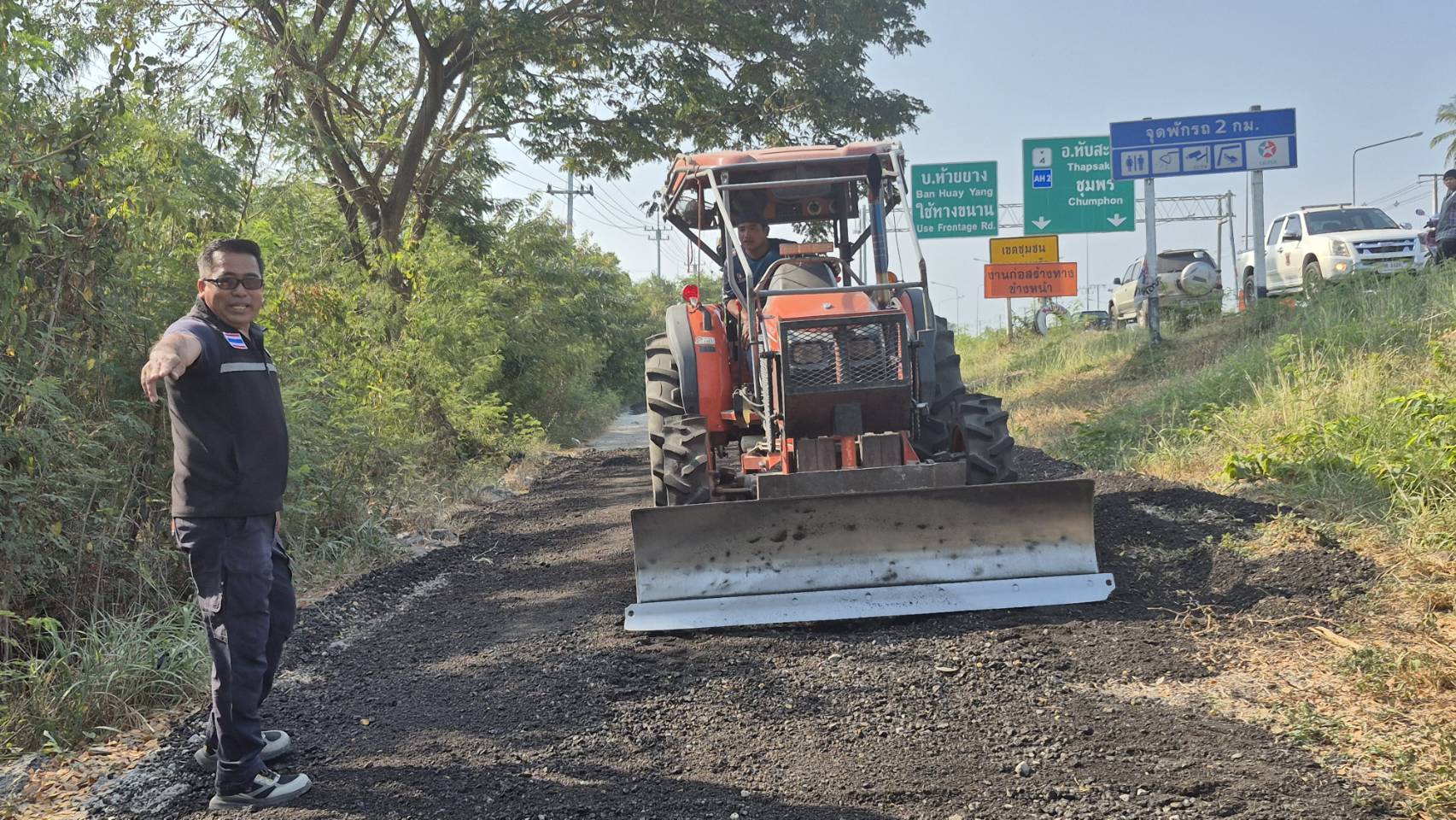 จึงได้ประสานไปทาง กรมทางหลวง อบต.ห้วยยาง โดย ปลัด อบต.มอบหมายให้ พ.อ.อ.ฉัตรชัย สวียานนท์ หัวหน้างานป้องกันและบรรเทาสาธารณภัย อบต.ห้วยยาง ประสานรถบรรทุก 6 ล้อ และรถไถดำเนินการขนหินคลุกกากยางจำนวนกว่า 25 คิว มาใส่เป็นทางจากนั้นใช้รถไถดันเกลี่ยเป็นถนน เพื่อใช้ชาวบ้านใช้สัญจรได้ตามปกติ ซึ่งจุดกลับรถดังกล่าวเมื่อซ่อมเสร็จ รถบรรทุก 6 ล้อเล็ก รถรั้ว รถกระบะ รถเก๋ง และ จยย. สามารถใช้เส้นทางได้อย่างปลอดภัย ช่วยลดอุบัติเหตุที่จุดกลับรถยูเทิร์นสาย 2 และหลังจากนี้จะมีการติดตั้งไฟส่องสว่างเพิ่มเพื่อป้องกันอุบัติเหตุในยามวิกาล