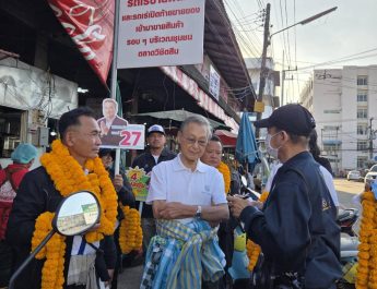 คณะกรรมการการเลือกตั้งจังหวัดลพบุรีสังเกตการณ์บรรยากาศการขึ้นเวทีปราศรัยการหาเสียงเลือกตั้งของผู้สมัครในเขตเลือกตั้งที่ 4 โดยมีประชาชนให้ความสนใจมารับฟังเป็นจำนวนมาก