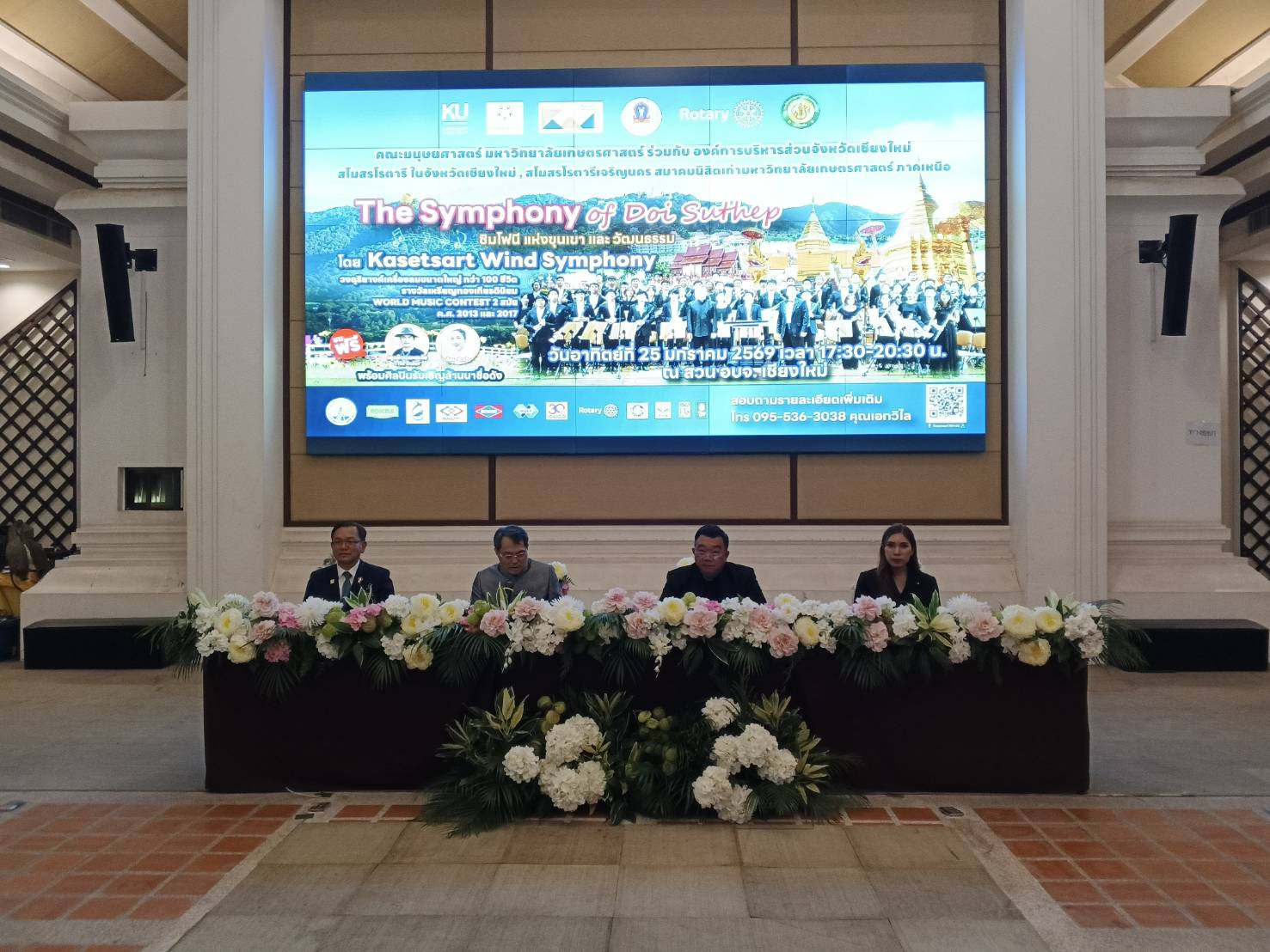 ใหม่ น.พ.เต็มชัย เต็มยิ่งยง รองนายก อบจ.เชียงใหม่ เป็นประธานแถลงข่าวการแสดงดนตรี “The Symphony of Doi Suthep ซิมโพนีแห่งขุนเขาและนวัตกรรม”และโครงการ Music for all การอบรมเชิงปฏิบัติการทางดนตรีเพื่อเยาวชนส่งเสริม Soft Power มนต์เสน่ห์ขลังจังหวัดเชียงใหม่มี ผศ.รัขต ชมภูนิช รองอธิการบดีฝ่ายกิจการนิสิตและพัฒนาอย่างยั่งยืน มหาวิทยาลัยเกษตรศาสตร์ อ.บุษยพัชร อุ่นจิตติกุลอ.ประจำภาควิชาดนตรี คณะมนุษยศาสตร์ และ ดร.จารุวัตรเดชะวุฒิ ผู้ว่าการภาค 3160โรตารี่สากล ร่วมแถลงข่าวดังกล่าว ท่ามกลางข้าราชการนักวิชาการ และเจ้าหน้าที่กว่ากว่า 109 คน