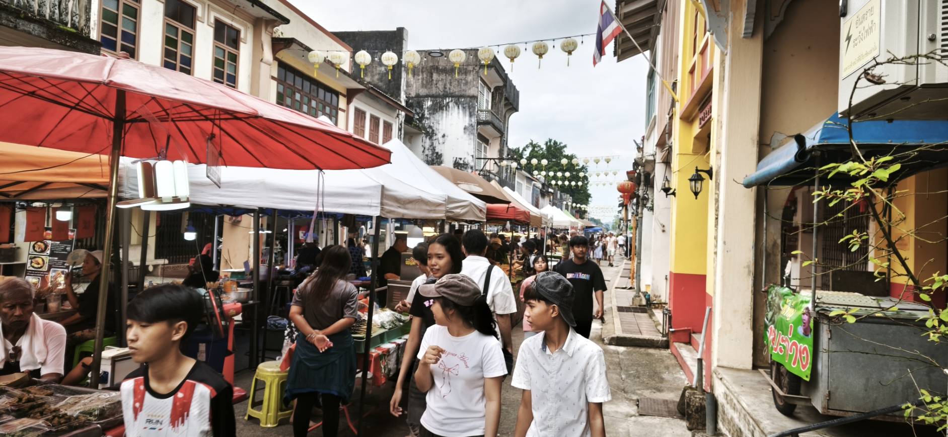 เมื่อวันอาทิตย์ที่ผ่านมา ผู้สื่อข่าวลงพื้นที่ถนนสายวัฒนธรรมเมืองเก่าตะกั่วป่า อำเภอตะกั่วป่า จังหวัดพังงา ซึ่งกลายเป็นแหล่งท่องเที่ยวยอดนิยมในทุกวันอาทิตย์ พบว่าบรรยากาศเต็มไปด้วยความคึกคัก มีนักท่องเที่ยวทั้งชาวไทยและชาวต่างชาติเดินทางมาท่องเที่ยว ชม ชิม และช้อปกันอย่างเนืองแน่น โดยเฉพาะนักท่องเที่ยวที่พักอยู่ในพื้นที่เขาหลัก ต่างแวะเข้ามาสัมผัสเสน่ห์เมืองเก่า ชมสถาปัตยกรรมบ้านเรือนสองข้างทางที่เป็นเอกลักษณ์ของคนไทยเชื้อสายจีนฝั่งทะเลอันดามัน เรียงรายตลอดเส้นทาง สะท้อนประวัติศาสตร์และวิถีชีวิตในอดีตของเมืองเหมืองแร่ดีบุก รวมถึงสตรีทอาร์ต ศิลปะภาพวาดข้างทางที่บอกเล่าถึงวัฒนธรรมและความยิ่งใหญ่ในอดีต ควบคู่กับถนนคนเดินที่เปิดโอกาสให้นักท่องเที่ยวได้เดินเที่ยวอย่างใกล้ชิดและเป็นกันเอง ภายในถนนคนเดินมีร้านค้าจากชุมชนเรียงรายตลอดสองฝั่งถนน นำเสนออาหารพื้นถิ่นและเมนูขึ้นชื่อของอำเภอตะกั่วป่า อาทิ ขนมเต้าส้อสูตรโบราณ ขนมจีนแกงปู หมี่ฮกเกี้ยน โอ้เอ๋ว เกี้ยนทอด ทอดมัน ขนมเบื้องโบราณ และขนมแปลกๆของพื้นถิ่นอีกหลายชนิดและน้ำสมุนไพรพื้นบ้าน รวมถึงอาหารทะเลแปรรูป เช่น กุ้งแห้ง ปลาหมึกแห้ง และน้ำพริกพื้นเมือง นอกจากนี้ยังมีสินค้าโอทอปและของฝากจากชุมชน เช่น ผ้าบาติกพังงา งานหัตถกรรมทำมือ เครื่องประดับพื้นถิ่น เสื้อผ้าสไตล์เมืองเก่า และของที่ระลึกสะท้อนอัตลักษณ์ท้องถิ่น ให้เลือกซื้ออย่างหลากหลาย นอกจากนี้ยังมีกิจกรรมและการแสดงทางวัฒนธรรมหมุนเวียนมาสร้างสีสัน เพิ่มความเพลิดเพลินให้กับนักท่องเที่ยวตลอดช่วงเย็น