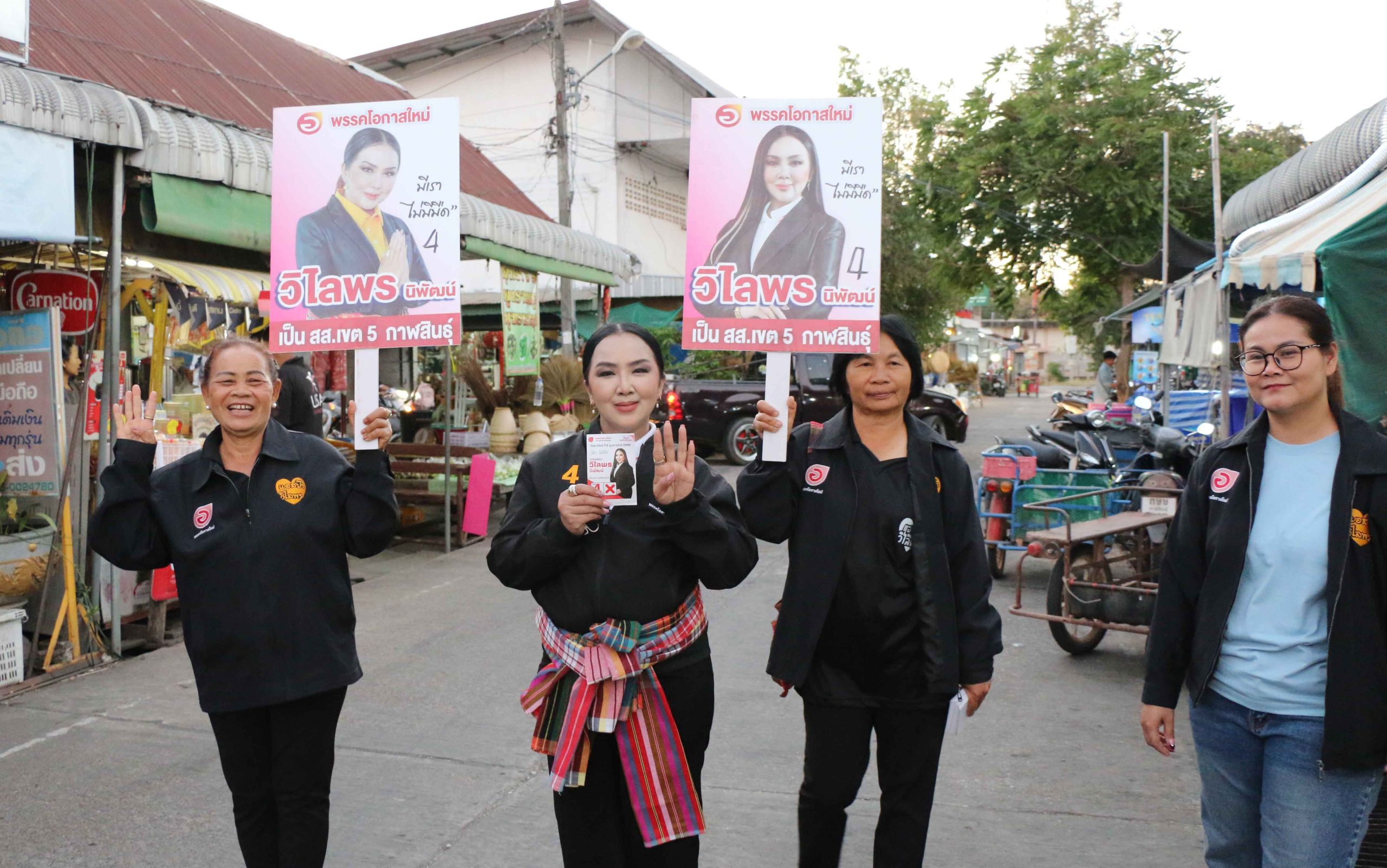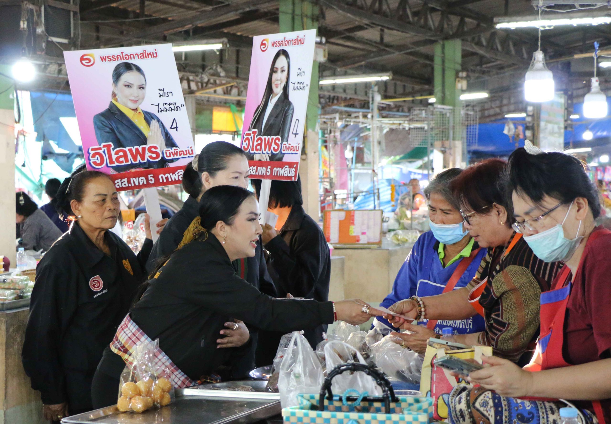 “วิไลพร นิพัฒน์” อดีต รองนายก อบจ.กาฬสินธุ์ ผู้สมัคร สส.กาฬสินธุ์ เขต 5 พรรคโอกาสใหม่ เบอร์ 4 ลุยตลาดสดอำเภอห้วยผึ้ง จังหวัดกาฬสินธุ์ แจกบัตรแนะนำตัว กราบขอโอกส และขอคะแนนพ่อค้า แม่ค้า “มีเราไม่มีมืด” มี “โอกาสใหม่” นำโดย “จตุพร บุรุษพัฒน์” หัวหน้าพรรคฯ มีแต่แสงสว่าง พร้อมมุ่งมั่นตั้งใจจะปักธง สส.กาฬสินธุ์ เขต 5