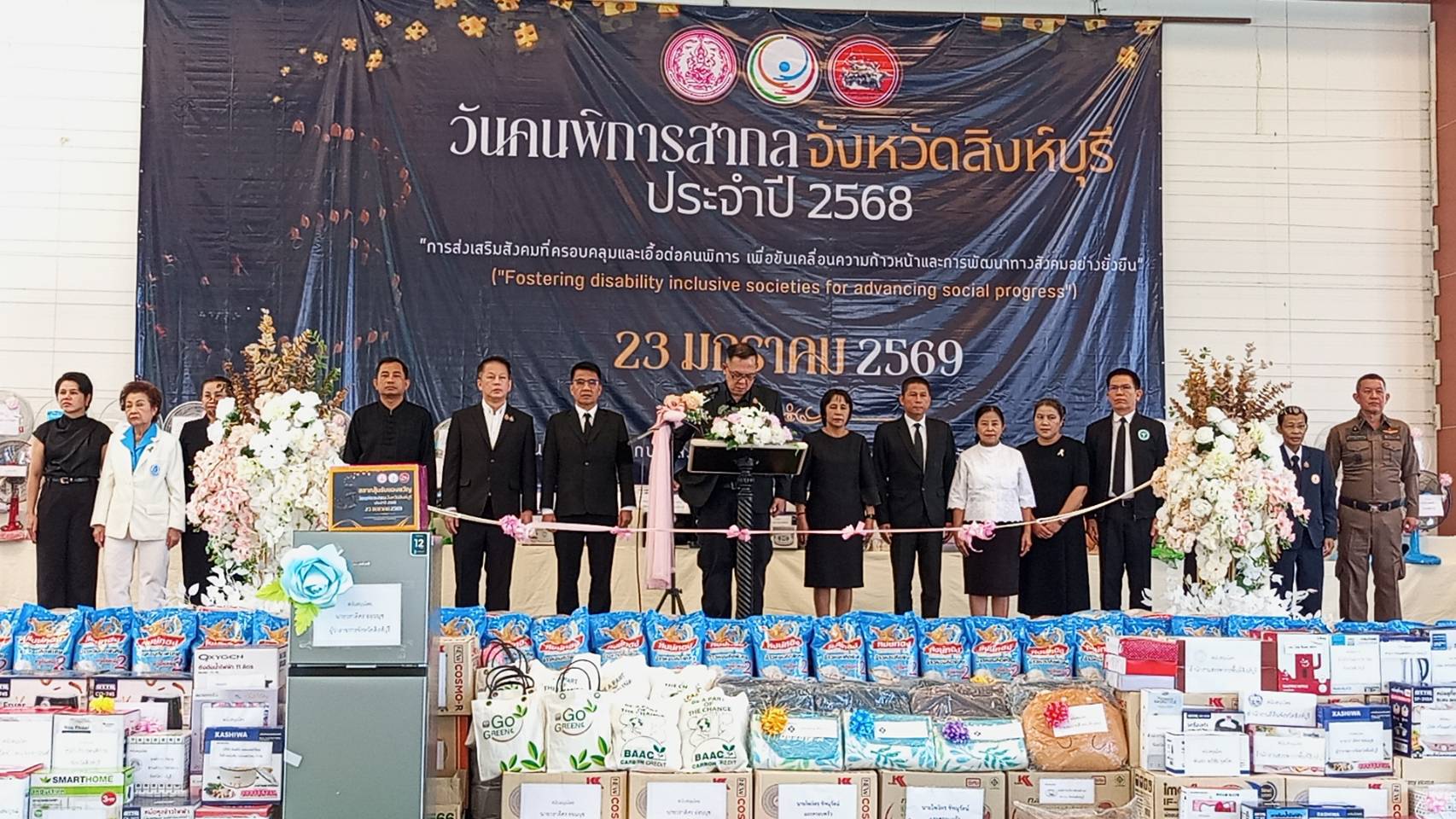 เมื่อวันศุกร์ที่ 23 มกราคม 2569 เวลา 10.00 น. ณ อาคารเอนกประสงค์ สนามกีฬาองค์การบริหารส่วนจังหวัดสิงห์บุรี นายวราดิศร อ่อนนุช ผู้ว่าราชการจังหวัดสิงห์บุรี เป็นประธานในพิธีเปิดงาน โดยมีนายชุมพล ดาวแจ่ม ผู้พิพากษาหัวหน้าศาลเยาวชนและครอบครัวจังหวัดสิงห์บุรี นางสาววีรวรรณ จันทนเสวี และนายสหชัย แจ่มประสิทธิ์สกุล รองผู้ว่าราชการจังหวัดสิงห์บุรี พร้อมด้วยหัวหน้าส่วนราชการ เหล่ากาชาดจังหวัดสิงห์บุรี หน่วยงานภาครัฐ ภาคเอกชน และเครือข่ายองค์กรด้านคนพิการ เข้าร่วมงานอย่างพร้อมเพรียง