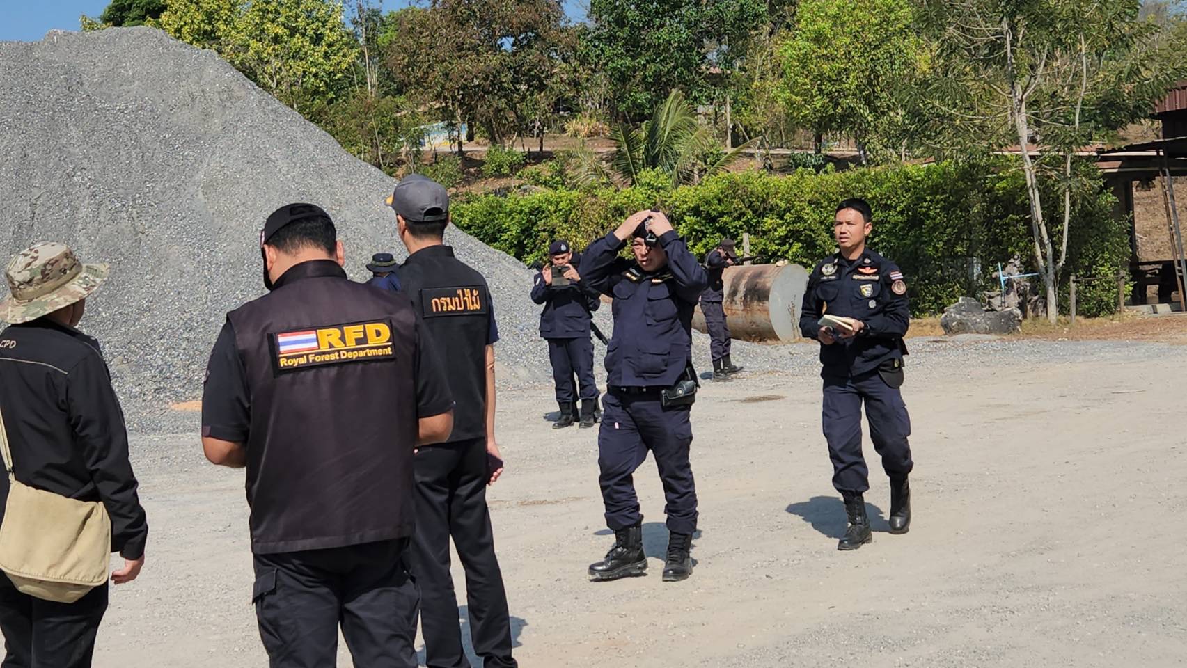 เมื่อวันที่ 23 ม.ค.68 ที่ผ่านมา ผู้สื่อข่าวรายงานว่า นายอัครเดช วงศ์กาฬสินธุ์ ผู้อำนวยการสำนักจัดการทรัพยากรป่าไม้ที่ 10 (ราชบุรี) พร้อม นายชาญชัย กิจศักดาภาพ หัวหน้าหน่วยเฉพาะกิจปราบปรามพิเศษ (พยัคฆ์ไพร) กรมป่าไม้ นายสาธิต สุวรรณวนิช เจ้าพนักงานปกครองชำนาญการพิเศษ ปลัดอาวุโส อำเภอทองผาภูมิ นายอุกฤษณ์ ขาวสอาด นายช่างโยธาชำนาญงาน นิคมสหกรณ์ทองผาภูมิ นายสมฤทธิ์ แก่นเคี่ยม ผู้อำนวยการส่วนป้องกันรักษาป่าและควบคุมไฟป่า นายนพพันธ์ เกตุพุฒ ชุดปฏิบัติการพิเศษป่าไม้ สำนักจัดการทรัพยากรป่าไม้ที่ 10 (ราชบุรี) 1 ร้อยตรีวัฒนา แซ่ก๊วย ผบ.มว.ลว. หน่วยเฉพาะกิจลาดหญ้า นายอำพร แสนสุข หัวหน้าหน่วยป้องกันรักษาป่าที่ กจ.3 (พุถ่อง) นางชลธิชา สุดแน่น ผู้ใหญ่บ้าน หมู่ที่ 6 ตำบลลิ่นถิ่น อำเภอทองผาภูมิ เจ้าหน้าที่ชุดพยัคฆ์ไพร กรมป่าไม้ เจ้าหน้าที่ชุดปฏิบัติการพิเศษป่าไม้ สำนักจัดการทรัพยากรป่าไม้ที่ 10 (ราชบุรี) 1 เจ้าหน้าที่ชุดปฏิบัติการพิเศษป่าไม้กาญจนบุรี เจ้าหน้าที่ส่วนป้องกันรักษาป่าและควบคุมไฟป่า สำนักจัดการทรัพยากรป่าไม้ที่ 10 (ราชบุรี) เจ้าหน้าที่หน่วยป้องกันรักษาป่าที่ กจ.3 (พุถ่อง) เจ้าหน้าที่หน่วยป้องกันรักษาป่าที่ กจ.4 (อู่ล่อง) เจ้าหน้าที่หน่วยป้องกันรักษาป่าที่ กจ.6 (พุเตย) และ ทหารหน่วยเฉพาะกิจลาดหญ้า