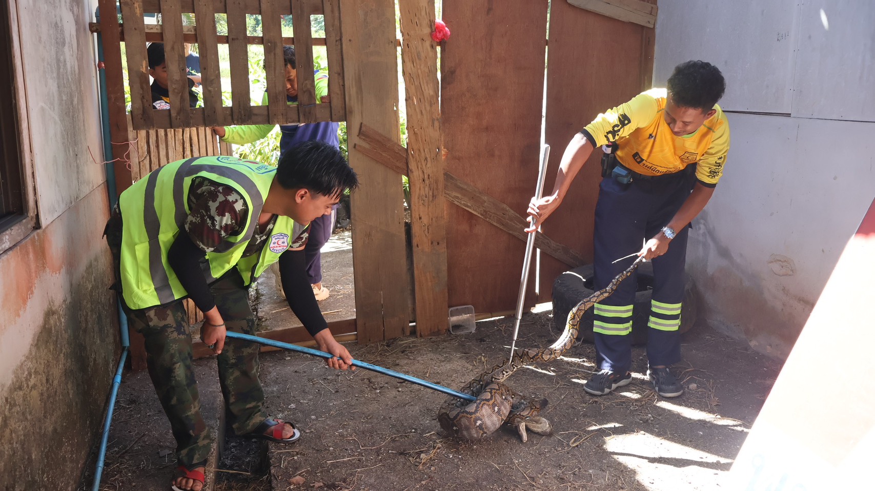 วันที่ 24 ม.ค.69 นายโยธิน ประชามติรัฐ หัวหน้าชุดปฏิบัติการกู้ชีพกู้ภัยมุสลิมเบตง ได้รับแจ้ง มีชาวบ้านขอความช่วยเหลือ ให้ไปช่วยจับงูที่โกดังผลไม้ ชุมชนกาแป๊ะ กม.2 เขตเทศบาลเมืองเบตง อ.เบตง จ.ยะลา ซึ่งอยู่ทางมุ่งหน้าด่านพรมแดนเบตง จึงส่งอาสาสมัครกู้ชีพกู้ภัยมุสลิมเบตง พร้อมนำอุปกรณ์การจับงู เข้าช่วยเหลือ
