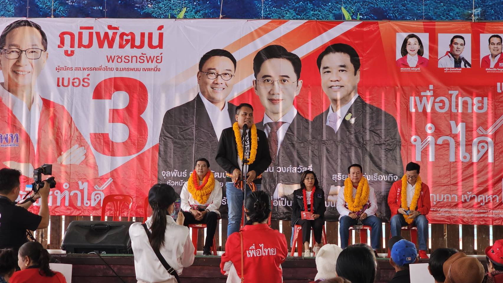 พรรคเพื่อไทยเดินหน้าเปิดเกมรุกสนามเลือกตั้งจังหวัดนครพนมอย่างเข้มข้น เมื่อวันที่ 24 มกราคม 2569 เวลา 10.00 น. จัดเวทีปราศรัยย่อย ณ อาคารโดม โรงเรียนอนุบาลบ้านแพง อำเภอบ้านแพง จังหวัดนครพนม เพื่อสนับสนุนการหาเสียงของ ดร.ภูมิพัฒน์ พชรทรัพย์ ผู้สมัครสมาชิกสภาผู้แทนราษฎร เขต 1 นครพนม มุ่งรักษาฐานเสียงเดิม พร้อมตอกย้ำความได้เปรียบทางการเมืองในพื้นที่อย่างชัดเจน