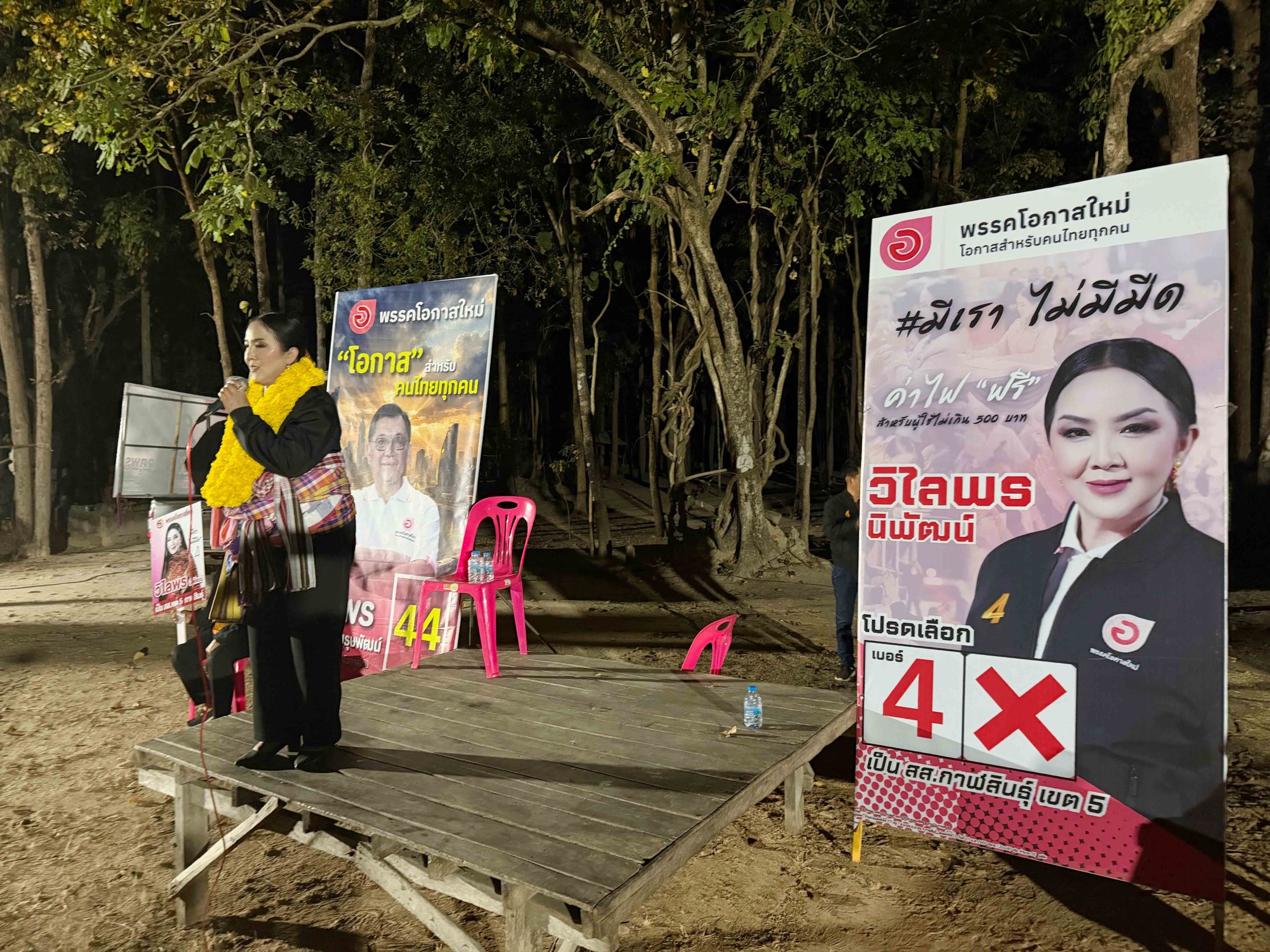 นอกจากนี้ยังเดินสายเปิดเวทีปราศรัยขอคะแนน และขอโอกาสเป็นสส.กาฬสินธุ์ เขต 5 กับพี่น้องประชาชนชาวโนนเที่ยง โดยยังคงชูสโลแกน “มีเราไม่มีมืด” มีพรรคโอกาสใหม่ เบอร์ 44 นำโดยนายจตุพร บุรุษพัฒน์ หัวหน้าพรรคฯ และให้นางวิไลพร ที่ไหนสว่างที่นั่น พร้อมขอพี่น้องประชาชนชาวกาฬสินธุ์ เขต 5 เปลี่ยนผู้แทนฯและให้โอกาส “วิไลพร”ได้เป็นสส. และประกาศปักธงกาฬสินธุ์ เขต 5