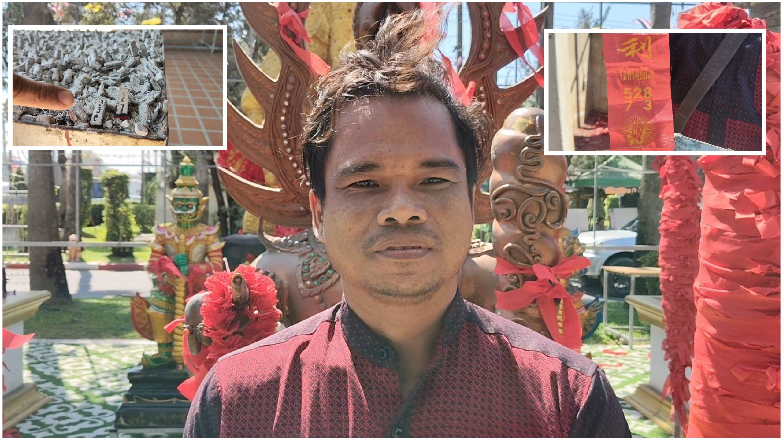 ด้านนายพัชร วงสาศิลป์ นำประทัด 1,000 นัด พร้อมด้วยเครื่องเซ่นไหว้ชุดใหญ่มาแก้บนท้าวเวสสุวรรณหลังขอพรไปแล้วได้โชครับเงินสมหวังดังใจ นายพัชรกล่าวว่า ตนเองรับเหมาต่อเติมบ้านอยู่ย่านธัญบุรีตนได้เดินทางมาอธิษฐานขอพรกับท้าวเวสสุวรรณไว้ในเรื่องโชคลาภซึ่งในครั้งนั้นตนได้ระบุยอดเงินที่ต้องการไว้ 60,000 บาทและหลังจากกลับไปเพียงหนึ่งถึงสองวันปรากฏว่าโชคลาภก้อนใหญ่ได้เข้ามาหาตามที่ขอไว้จริงๆ โดยมียอดรวมกว่า 60,000 บาท ซึ่งถือว่าตรงตามความตั้งใจเป็นอย่างมาก นายพัชรยังกล่าวอีกว่าความโชคดีในลักษณะนี้ไม่ได้เกิดขึ้นเป็นครั้งแรกเพราะตนเองได้รับโชคจากการมาขอพรท้าเวสฯติดต่อกันมาแล้วหลายงวดส่งผลให้การดำเนินชีวิตและหน้าที่การงานมีความราบรื่นมาโดยตลอด สำหรับการเดินทางมาในวันนี้ตนเองจึงตั้งใจมาทำพิธีแก้บนตามสัญญาที่ให้ไว้พร้อมกับขอพรใหม่แต่ครั้งนี้ตนเองขอพรในเรื่องขอพรความรักเป็นหลัก และขอให้หน้าที่การงานยังคงมีความราบรื่น ให้มีโชคลาภพุ่งเข้าหาตัวอย่างต่อเนื่องเหมือนที่ผ่านมา ก่อนกลับได้จุดประทัดได้เลข 528 73 และสิ่งที่ทำให้นายพัชรตกใจเมื่อเลขธูปดันตรงกับพ.ศ.เกิดของตนพอดี และตนก็เกิดในเดือนนี้ด้วยคือเลขจุดธูปมงคลที่จุดได้เลข 27 ทำให้ตนเชื่อมั่นว่าการขอพรใหม่ในครั้งนี้จะสมหวังในเร็ววันเช่นเดิมและจะนำไปลุ้นโชคครั้งต่อไปแน่นอน