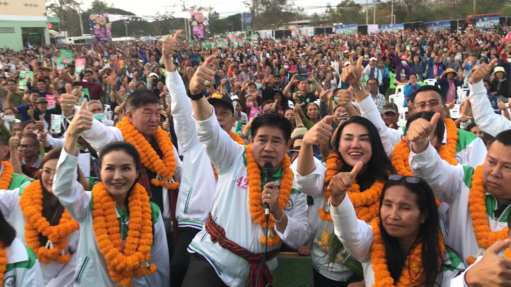ทั้งนี้ หลังทำการปราศรัยเสร็จ ร.อ.ธรรมนัส พรหมเผ่า ประธานที่ปรึกษาพรรคกล้าธรรม และแคนดิเดตนายกรัฐมนตรี พร้อมด้วย ศ.ดร.นฤมล ภิญโญสินวัฒน์ หรือ (อาจารย์แหม่ม) หัวหน้าพรรคกล้าธรรม และผู้สมครสส. ก็ได้มีการถ่ายภาพร่วมกันกับชาวบ้านกว่า15,000 คนที่มาเข้าร่วมรับฟังการปราศรัยอย่างคึกคัก/////