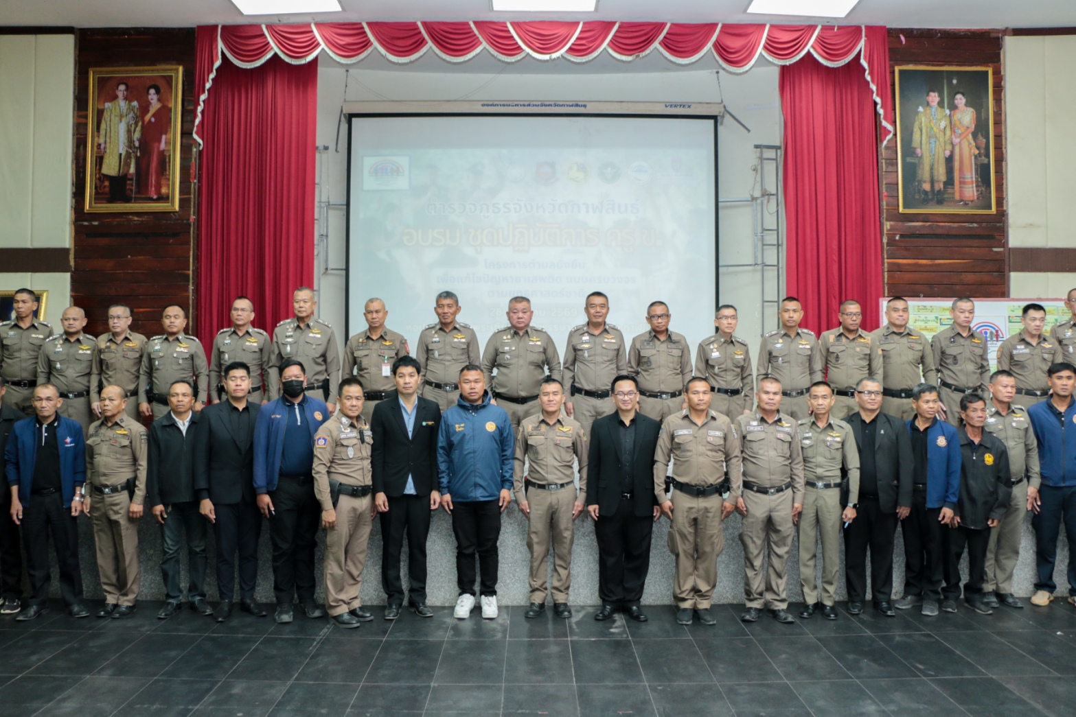 ที่หอประชุมเฉลิมพระเกียรติ 80 พรรษา อ.เมืองกาฬสินธุ์ จ.กาฬสินธุ์ พล.ต.ต.ทรงพล บริบาลประสิทธิ์ ผบก.ภ.จว.กาฬสินธุ์ เป็นประธานเปิด และเป็นวิทยากรพิเศษบรรยาย การอบรมชุดปฏิบัติการ ครู ข. “โครงการตำบลยั่งยืนเพื่อแก้ไขปัญหายาเสพติด แบบครบวงจรตามยุทธศาสตร์ชาติ ประจำปี 2569” โดยมี พ.ต.อ.นพดล ศรีชะตา รอง ผบก.ภ.จว.กาฬสินธุ์ พร้อมด้วย ผกก.ฯ สว.ฯหัวหน้าสถานีตำรวจทุกโรงพัก นำชุดปฏิบัติการ ครู ข.ทุกสถานี เข้าร่วมการอบรม