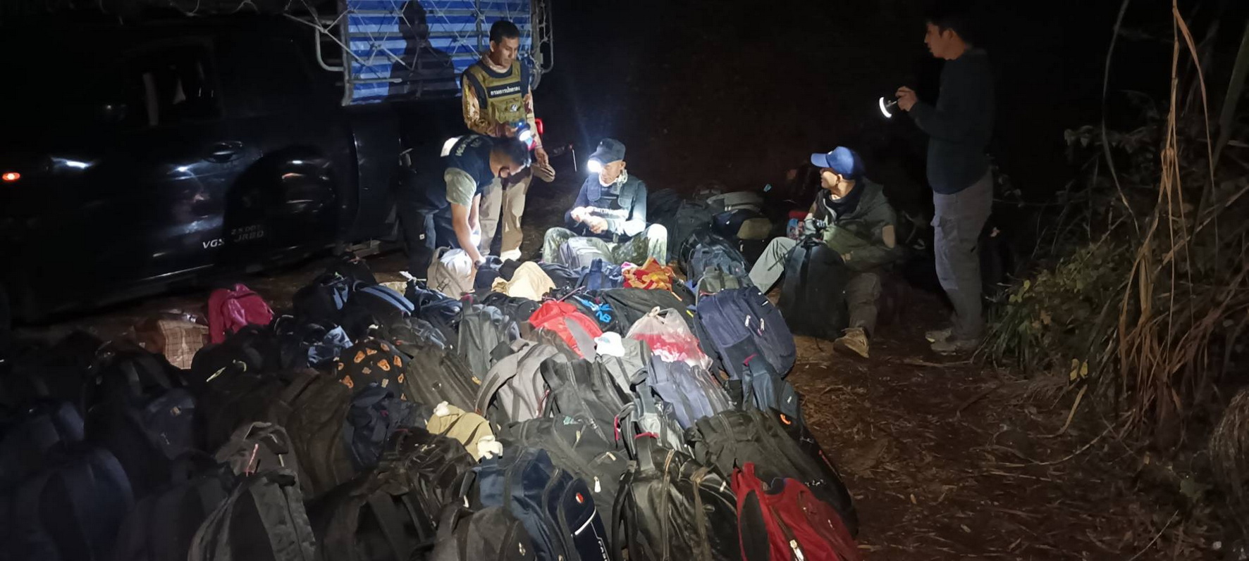 จากการตรวจค้นรถยนต์กระบะยี่ห้ออีซูซุ สีบรอนซ์เงิน หัวเดียว หมายเลขทะเบียน บน 8656 เพชรบุรี ที่มีนายอวิรุทธ์ หรือไอซ์เป็นคนขับ และรถยนต์กระบะยี่ห้อนิสสัน แคป สีเทาดำ หมายเลขทะเบียน 1ฒผ 9296 กรุงเทพมหานคร ที่คนขับหลบหนีไปได้ พบแรงงานต่างด้าวทั้งชายหญิงนั่งแออัดกันมาเต็มคันรถ นับรวมกันได้ 112 คน ส่วนรถยนต์กระบะยี่ห้อนิสสัน นาวาร่า สีดำ หมายเลขทะเบียน ผค 9693 ระยอง ที่มีนายนายศุภนันท์ เป็นคนขับ พบบรรทุกกระเป๋าเป้ของกลุ่มแรงงานต่างด้าวมากถึง 172 ใบ
