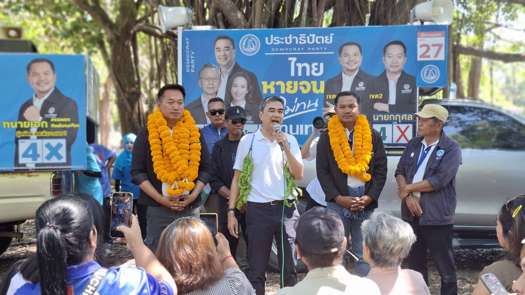 เมื่อวันที่ 30 มกราคม 2569 ผู้สื่อข่าวรายการบ้าที่บริเวณสวนสมเด็จเมืองพังงา บรรยากาศการหาเสียงเลือกตั้งในจังหวัดพังงาคึกคักเป็นพิเศษ เมื่อ นายอภิสิทธิ์ เวชชาชีวะ หัวหน้าพรรคประชาธิปัตย์และ อดีตนายกรัฐมนตรี พร้อมด้วยนายชัยชนะ เดชเดโช รองหัวหน้าพรรคประชาธิปัตย์ลงพื้นที่ช่วยผู้สมัครสส. ในเขต 1 เขต 2 พื้นที่จังหวัดพังงา นางกันตวรรณ ตันเถียร (กุลจรรยาวิวัฒน์)’ ผู้สมัครสมาชิกสภาผู้แทนราษฎรแบบบัญชีรายชื่อ พรรคประชาธิปัตย์ เบอร์ 27 และ นาสรรเพชร ทิพย์มณเฑียร ทนายเอก ประธานทนายความจังหวัดพังงา ผู้สมัคร สส.เขต 1 เบอร์ 4 พื้นที่ อ.ทับปุด อ.เกาะยาว อ.ตะกั่วทุ่ง และอ.เมืองพังงา ส่วนผู้สมัครเขต 2 นายกุศล ทนังผล อดีตนายก อบต.หล่อยูง ลงแข่งเขต 2 เบอร์ 4 อ.ท้ายเหมือง อ.ตะกั่วป่า อ.กะปง และ อ.คุระบุรี
