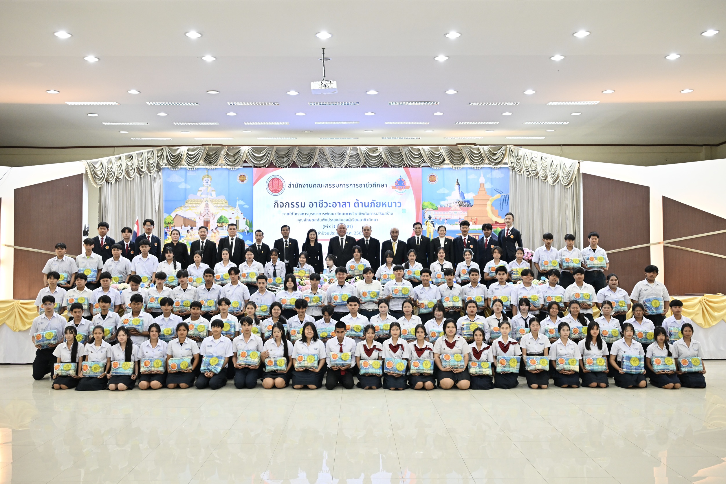 เลขาธิการ กอศ. กล่าวต่อว่า กิจกรรมดังกล่าวไม่ได้เป็นเพียงการช่วยเหลือด้านสวัสดิการ แต่บูรณาการการเรียนรู้ควบคู่กับการบริการสังคม พร้อมจัดตั้ง ศูนย์ซ่อมสร้างเพื่อชุมชน (Fix it Center) โดยสำนักงานอาชีวศึกษาจังหวัดเพชรบูรณ์ ให้บริการซ่อมแซมเครื่องใช้ไฟฟ้า เปลี่ยนถ่ายน้ำมันเครื่องรถจักรยานยนต์ และจัดแสดงผลงานการจัดการเรียนการสอน เพื่อแนะแนวการเรียนสายอาชีพให้แก่นักเรียนที่สนใจศึกษาต่อ ซึ่งการดำเนินงานดังกล่าวคือบทบาทของอาชีวศึกษาในการนำองค์ความรู้และทักษะวิชาชีพไปใช้ประโยชน์อย่างเป็นรูปธรรม เป็น Softpower ของอาชีวะ ทั้งการฝึกประสบการณ์จริง การพัฒนาทักษะอาชีพ และการปลูกฝังจิตสำนึกจิตอาสาให้กับนักเรียน นักศึกษา