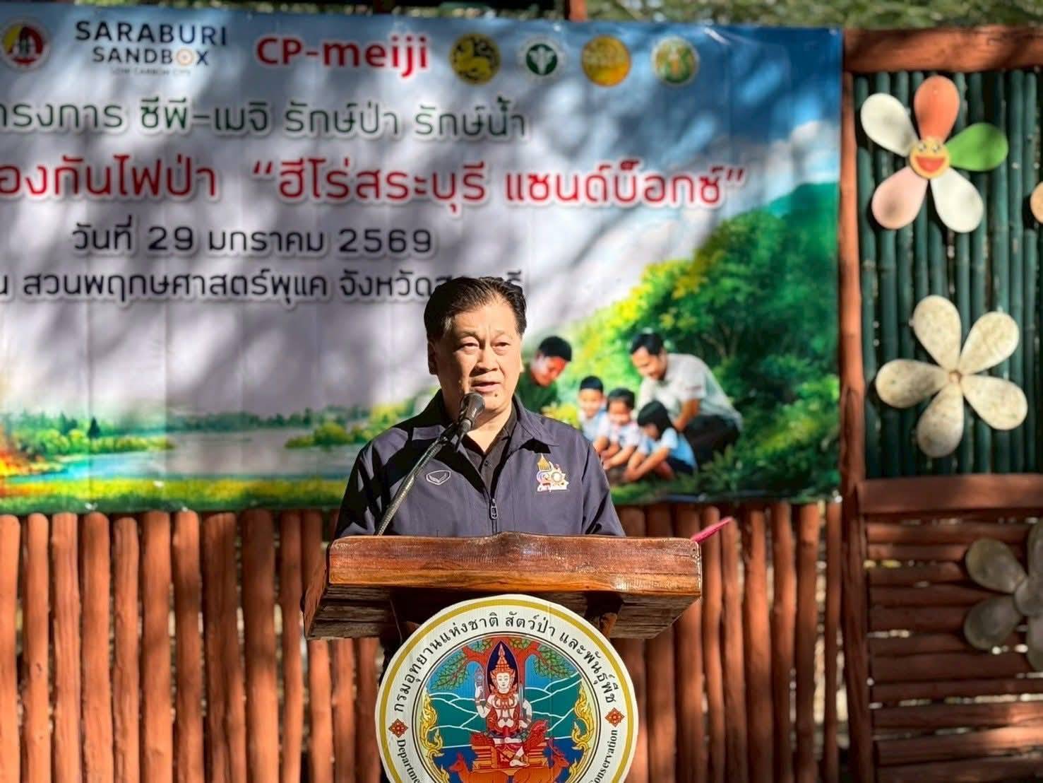 โครงการอบรมอาสาป้องกันไฟป่า “ฮีโร่สระบุรีแซนด์บ็อกซ์” ดำเนินการภายใต้โครงการอนุรักษ์ ฟื้นฟู และป้องกันการทำลายทรัพยากรธรรมชาติ เพื่อเผยแพร่ ประชาสัมพันธ์ข้อมูลทางด้านทรัพยากรธรรมชาติและสิ่งแวดล้อมในพื้นที่จังหวัดสระบุรี ให้กับหน่วยงานราชการ ผู้นำชุมชน ประชาชน องค์กรจิตอาสา เพื่อเสริมสร้างศักยภาพ ความร่วมมือ และเครือข่ายในการอนุรักษ์ทรัพยากรธรรมชาติและสิ่งแวดล้อม และการแก้ไขปัญหาไฟป่า หมอกควันและฝุ่นละอองขนาดเล็ก (PM 2.5) ในพื้นที่จังหวัดสระบุรี โดยโครงการในครั้งนี้ เกิดขึ้นภายใต้ความร่วมมือระหว่าง สำนักงานทรัพยากรธรรมชาติและสิ่งแวดล้อมจังหวัดสระบุรี ร่วมกับบริษัท ซีพี – เมจิ จำกัด เพื่อขับเคลื่อนการดำเนินงานภายใต้โครงการ “สระบุรีแซนด์บ็อกซ์ (Saraburi Sandbox)” ต้นเเบบเมืองคาร์บอนต่ำแห่งแรกของประเทศไทย